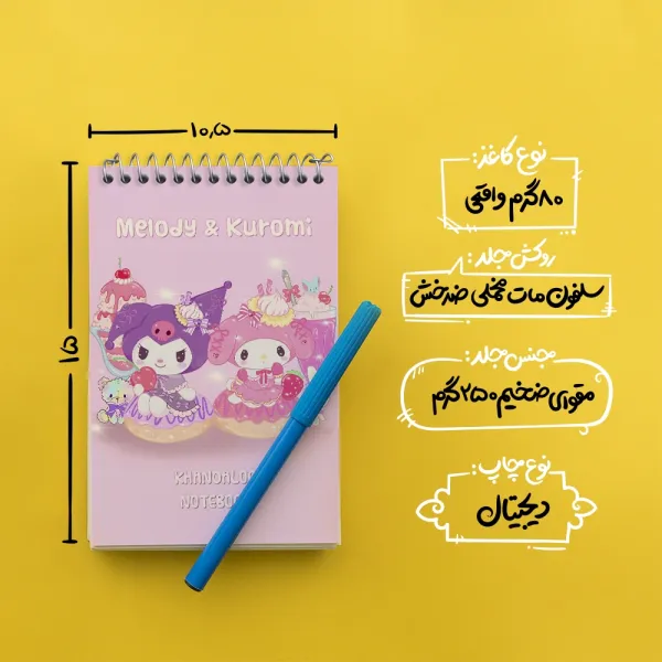 برند خندالو در زمینه تولید انواع دفاتر فانتزی و تحصیلی فعالیت میکند که به دلیل جذابیت ظاهری و طرح های متنوع طرفداران زیادی دارد. دفتر یادداشت خندالو طرح کرومی و مای ملودی محصولی مناسب برای همه عاشقان لوازم التحریر است و همچنین همه کسانی که بنا به موقعیت تحصیل یا شغلشان با دفتر و نوشت افزار زیاد سر و کار دارند. در تولید دفتر یادداشت خندالو طرح کرومی و مای ملودی از نوع صحافی فنر مارپیچ استفاده شده که در این نوع صحافی برگه‌ها به راحتی چرخیده و یا بیرون آورده می شوند.