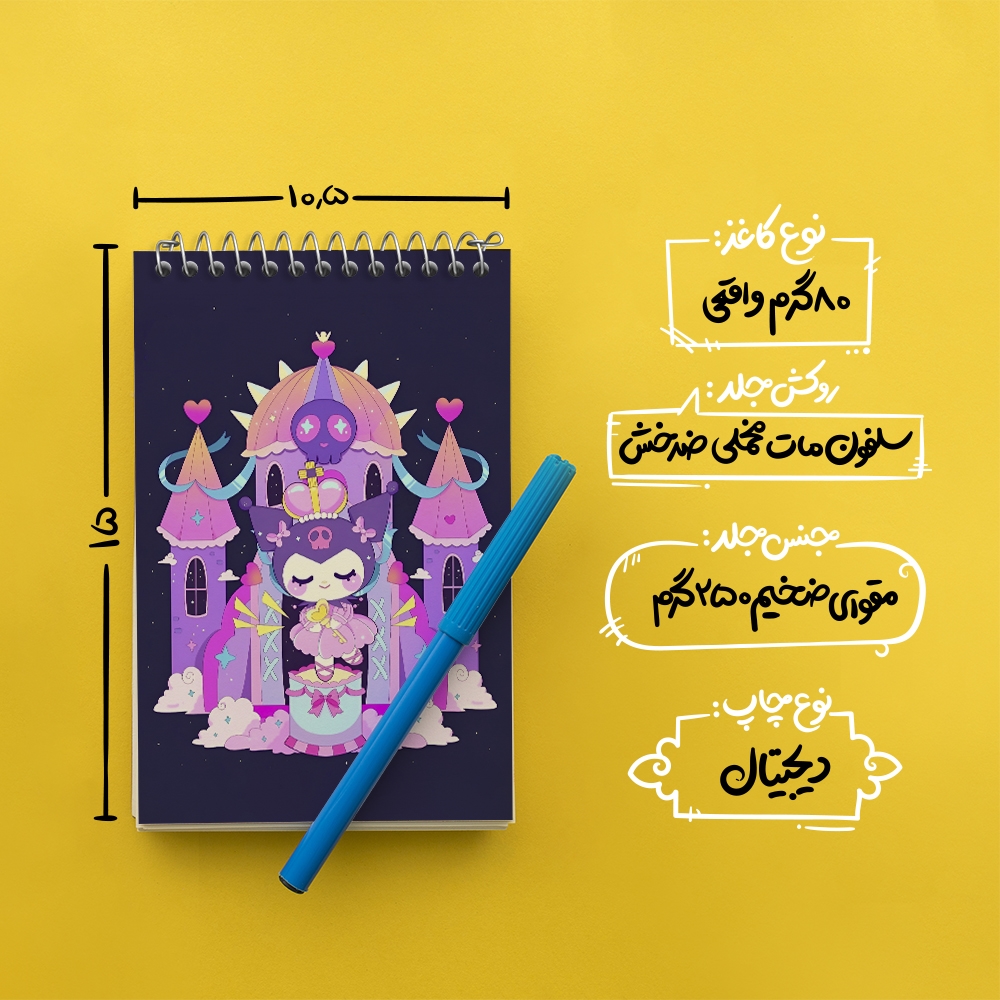 برند خندالو در زمینه تولید انواع دفاتر فانتزی و تحصیلی فعالیت میکند که به دلیل جذابیت ظاهری و طرح های متنوع طرفداران زیادی دارد. دفتر یادداشت خندالو طرح کرومی (Kuromi) محصولی مناسب برای همه عاشقان لوازم التحریر است و همچنین همه کسانی که بنا به موقعیت تحصیل یا شغلشان با دفتر و نوشت افزار زیاد سر و کار دارند. در تولید دفتر یادداشت خندالو طرح کرومی (Kuromi) از نوع صحافی فنر مارپیچ استفاده شده که در این نوع صحافی برگه‌ها به راحتی چرخیده و یا بیرون آورده می شوند.