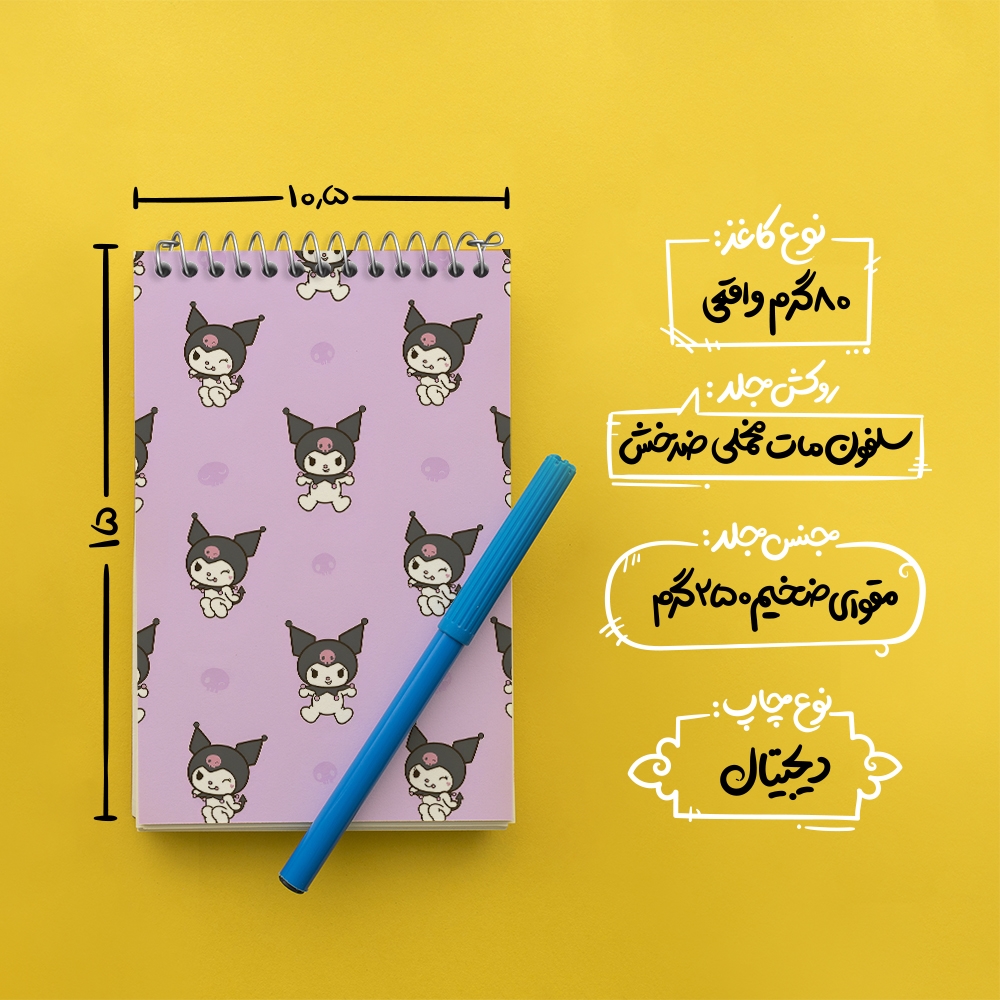 برند خندالو در زمینه تولید انواع دفاتر فانتزی و تحصیلی فعالیت میکند که به دلیل جذابیت ظاهری و طرح های متنوع طرفداران زیادی دارد. دفتر یادداشت خندالو طرح کرومی (Kuromi) محصولی مناسب برای همه عاشقان لوازم التحریر است و همچنین همه کسانی که بنا به موقعیت تحصیل یا شغلشان با دفتر و نوشت افزار زیاد سر و کار دارند. در تولید دفتر یادداشت خندالو طرح کرومی (Kuromi) از نوع صحافی فنر مارپیچ استفاده شده که در این نوع صحافی برگه‌ها به راحتی چرخیده و یا بیرون آورده می شوند.