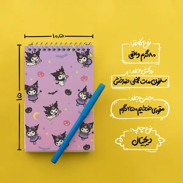 برند خندالو در زمینه تولید انواع دفاتر فانتزی و تحصیلی فعالیت میکند که به دلیل جذابیت ظاهری و طرح های متنوع طرفداران زیادی دارد. دفتر یادداشت خندالو طرح کرومی (Kuromi) محصولی مناسب برای همه عاشقان لوازم التحریر است و همچنین همه کسانی که بنا به موقعیت تحصیل یا شغلشان با دفتر و نوشت افزار زیاد سر و کار دارند. در تولید دفتر یادداشت خندالو طرح کرومی (Kuromi) از نوع صحافی فنر مارپیچ استفاده شده که در این نوع صحافی برگه‌ها به راحتی چرخیده و یا بیرون آورده می شوند.