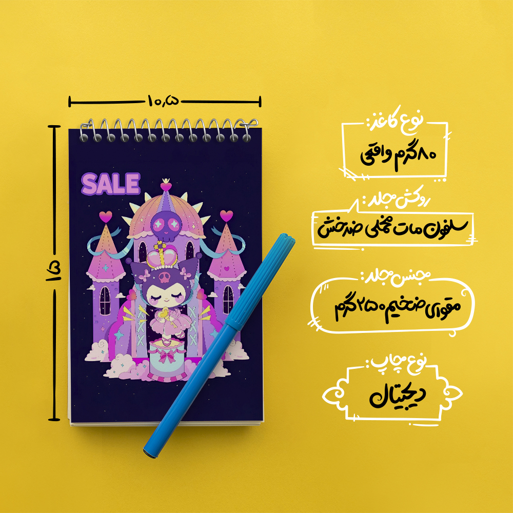 برند خندالو در زمینه تولید انواع دفاتر فانتزی و تحصیلی فعالیت میکند که به دلیل جذابیت ظاهری و طرح های متنوع طرفداران زیادی دارد. دفتر یادداشت خندالو طرح کرومی (Kuromi) محصولی مناسب برای همه عاشقان لوازم التحریر است و همچنین همه کسانی که بنا به موقعیت تحصیل یا شغلشان با دفتر و نوشت افزار زیاد سر و کار دارند. در تولید دفتر یادداشت خندالو طرح کرومی (Kuromi) از نوع صحافی فنر مارپیچ استفاده شده که در این نوع صحافی برگه‌ها به راحتی چرخیده و یا بیرون آورده می شوند.