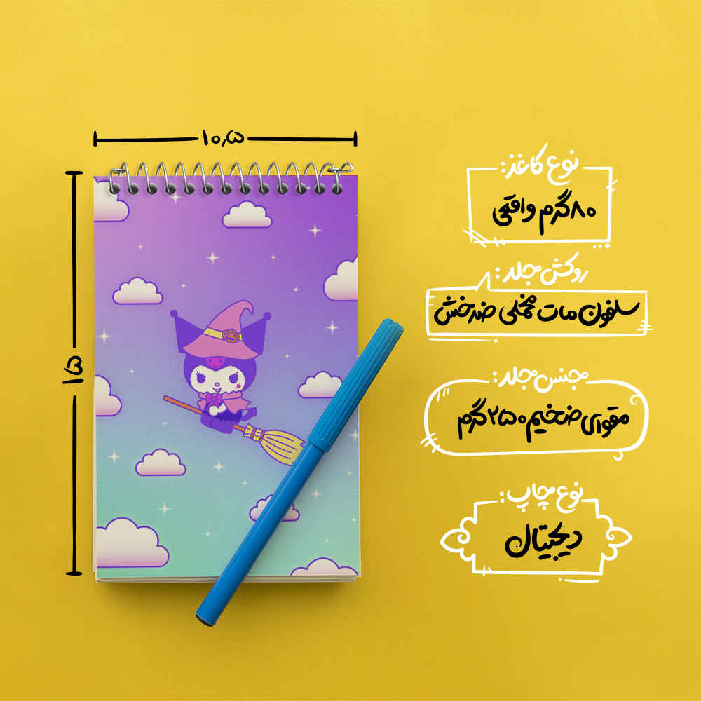 برند خندالو در زمینه تولید انواع دفاتر فانتزی و تحصیلی فعالیت میکند که به دلیل جذابیت ظاهری و طرح های متنوع طرفداران زیادی دارد. دفتر یادداشت خندالو طرح کرومی (Kuromi) محصولی مناسب برای همه عاشقان لوازم التحریر است و همچنین همه کسانی که بنا به موقعیت تحصیل یا شغلشان با دفتر و نوشت افزار زیاد سر و کار دارند. در تولید دفتر یادداشت خندالو طرح کرومی (Kuromi) از نوع صحافی فنر مارپیچ استفاده شده که در این نوع صحافی برگه‌ها به راحتی چرخیده و یا بیرون آورده می شوند.