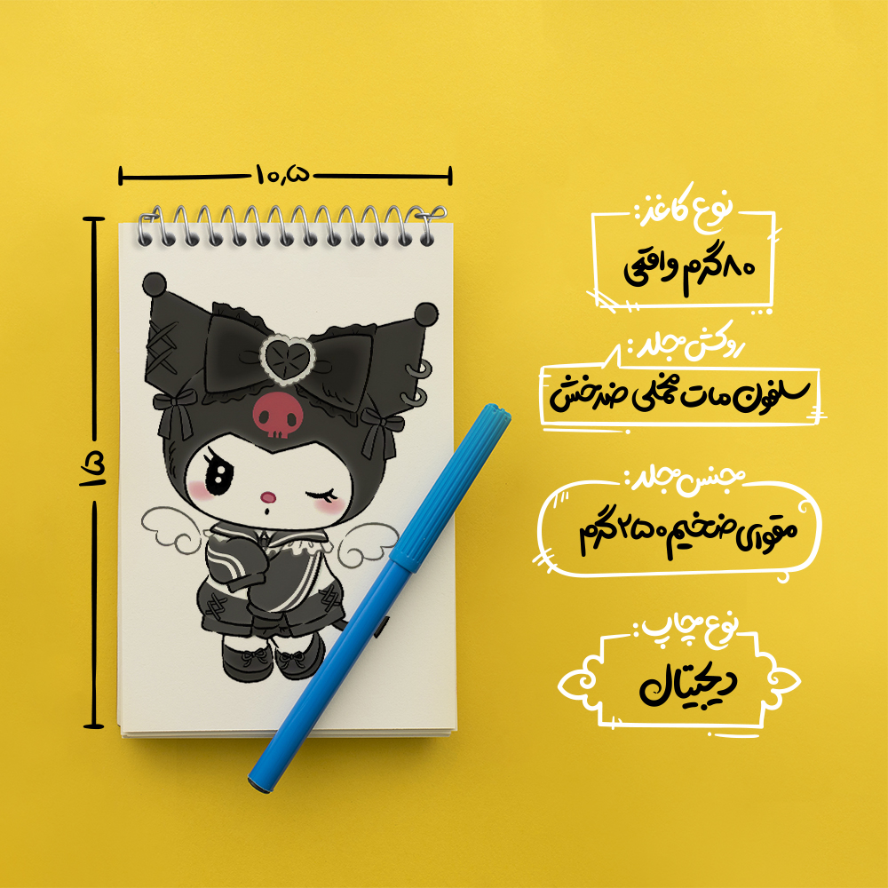 برند خندالو در زمینه تولید انواع دفاتر فانتزی و تحصیلی فعالیت میکند که به دلیل جذابیت ظاهری و طرح های متنوع طرفداران زیادی دارد. دفتر یادداشت خندالو طرح کرومی (Kuromi) محصولی مناسب برای همه عاشقان لوازم التحریر است و همچنین همه کسانی که بنا به موقعیت تحصیل یا شغلشان با دفتر و نوشت افزار زیاد سر و کار دارند. در تولید دفتر یادداشت خندالو طرح کرومی (Kuromi) از نوع صحافی فنر مارپیچ استفاده شده که در این نوع صحافی برگه‌ها به راحتی چرخیده و یا بیرون آورده می شوند.
