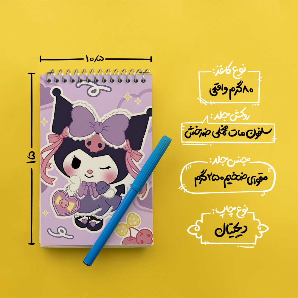 برند خندالو در زمینه تولید انواع دفاتر فانتزی و تحصیلی فعالیت میکند که به دلیل جذابیت ظاهری و طرح های متنوع طرفداران زیادی دارد. دفتر یادداشت خندالو طرح کرومی (Kuromi) محصولی مناسب برای همه عاشقان لوازم التحریر است و همچنین همه کسانی که بنا به موقعیت تحصیل یا شغلشان با دفتر و نوشت افزار زیاد سر و کار دارند. در تولید دفتر یادداشت خندالو طرح کرومی (Kuromi) از نوع صحافی فنر مارپیچ استفاده شده که در این نوع صحافی برگه‌ها به راحتی چرخیده و یا بیرون آورده می شوند.