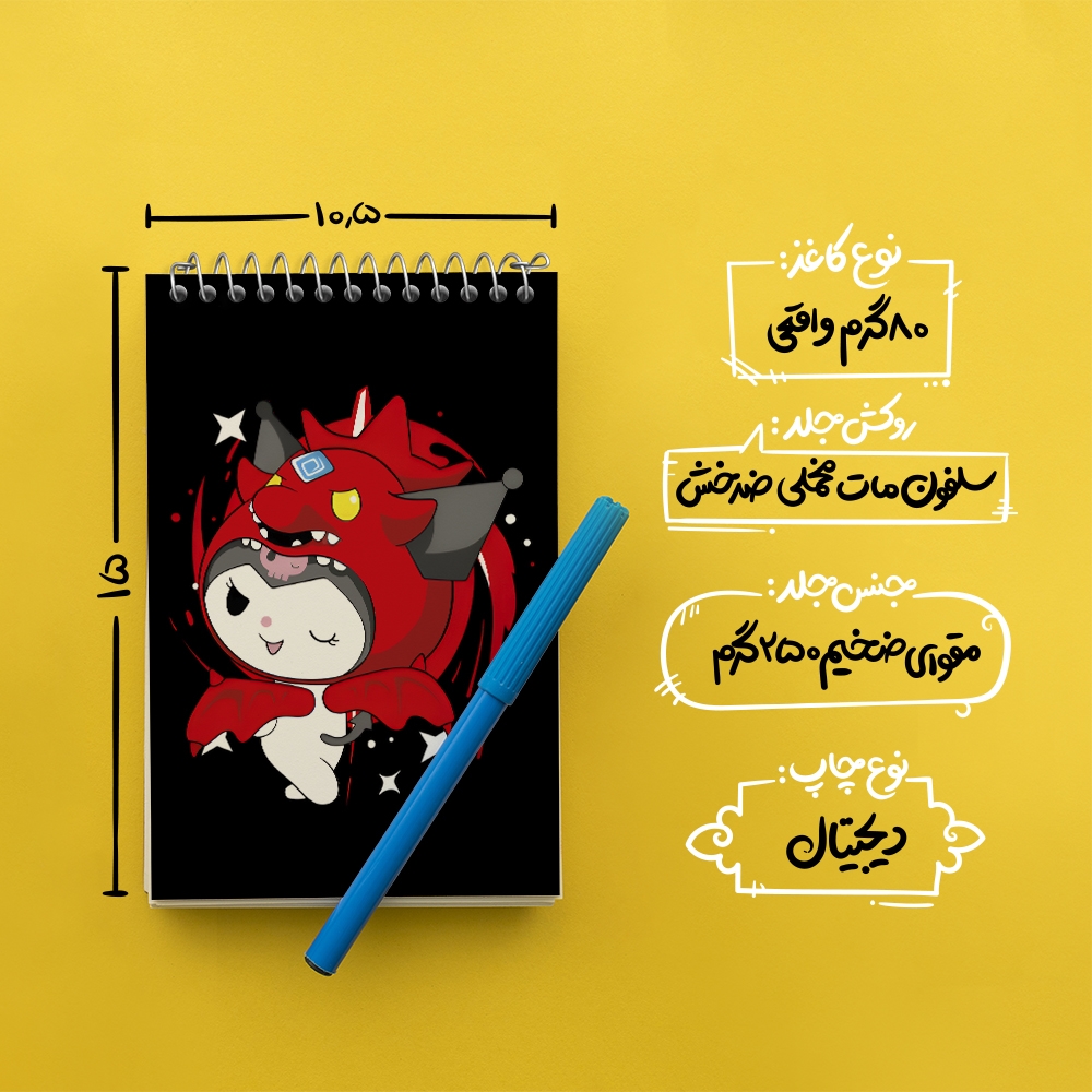 برند خندالو در زمینه تولید انواع دفاتر فانتزی و تحصیلی فعالیت میکند که به دلیل جذابیت ظاهری و طرح های متنوع طرفداران زیادی دارد. دفتر یادداشت خندالو طرح کرومی (Kuromi) محصولی مناسب برای همه عاشقان لوازم التحریر است و همچنین همه کسانی که بنا به موقعیت تحصیل یا شغلشان با دفتر و نوشت افزار زیاد سر و کار دارند. در تولید دفتر یادداشت خندالو طرح کرومی (Kuromi) از نوع صحافی فنر مارپیچ استفاده شده که در این نوع صحافی برگه‌ها به راحتی چرخیده و یا بیرون آورده می شوند.