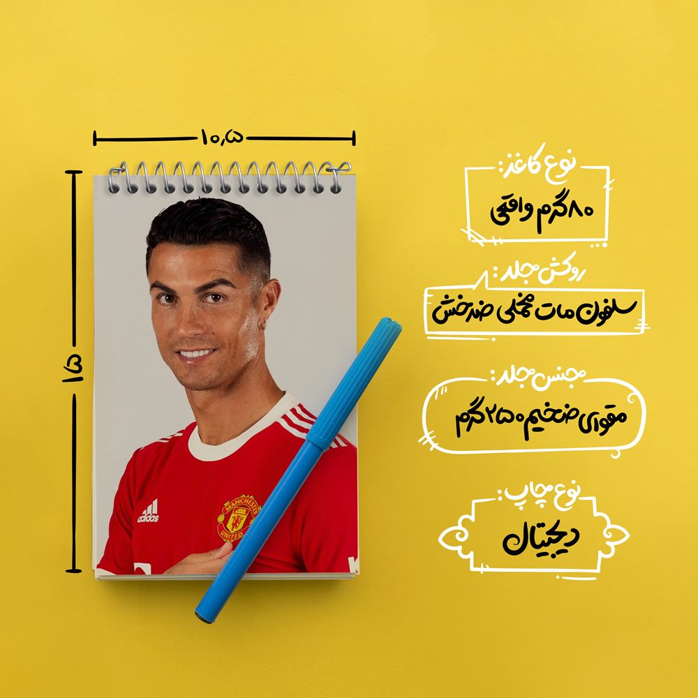 برند خندالو در زمینه تولید انواع دفاتر فانتزی و تحصیلی فعالیت میکند که به دلیل جذابیت ظاهری و طرح های متنوع طرفداران زیادی دارد. دفتر یادداشت خندالو طرح کریستیانو رونالدو محصولی مناسب برای همه عاشقان لوازم التحریر است و همچنین همه کسانی که بنا به موقعیت تحصیل یا شغلشان با دفتر و نوشت افزار زیاد سر و کار دارند. در تولید دفتر یادداشت خندالو طرح کریستیانو رونالدو از نوع صحافی فنر مارپیچ استفاده شده که در این نوع صحافی برگه‌ها به راحتی چرخیده و یا بیرون آورده می شوند.