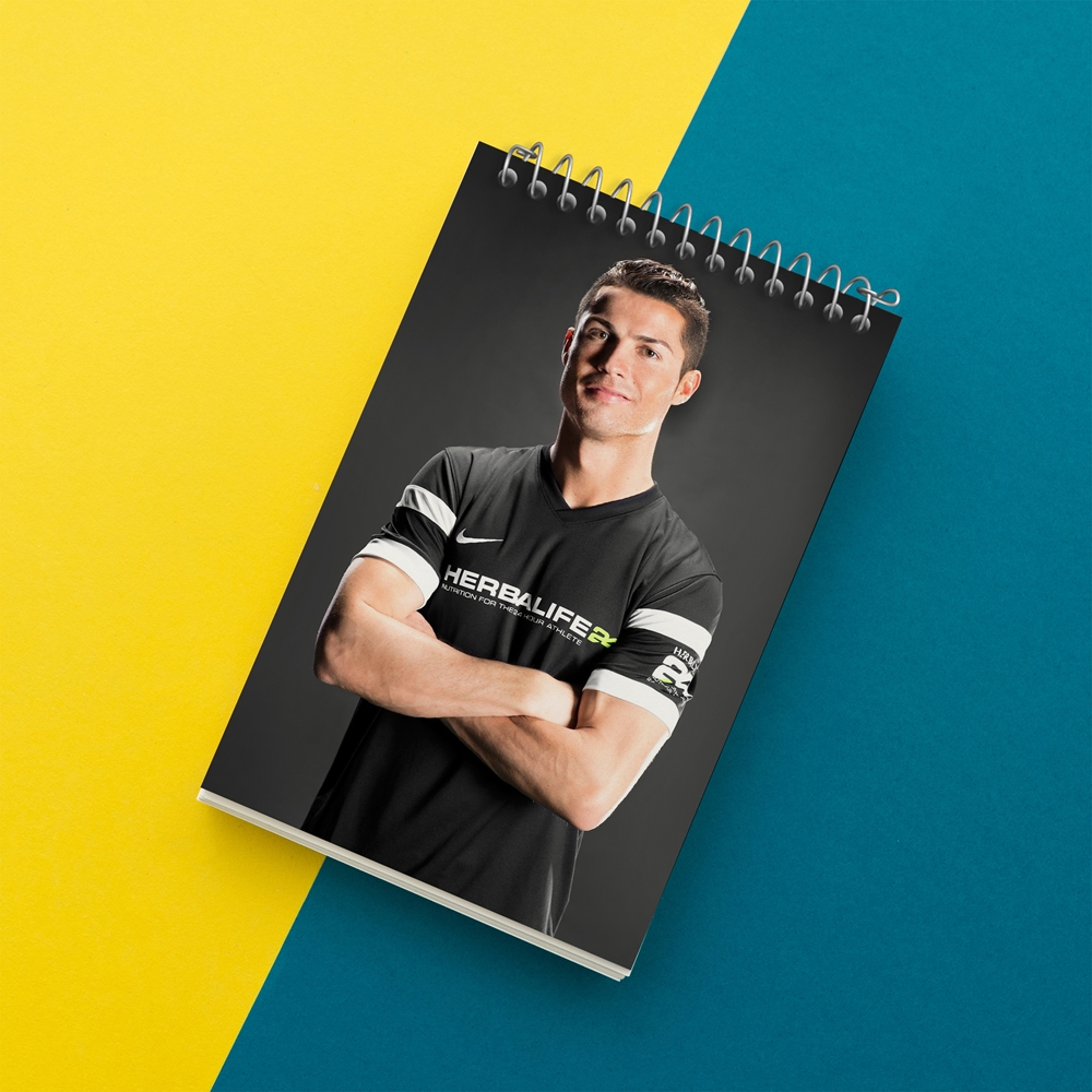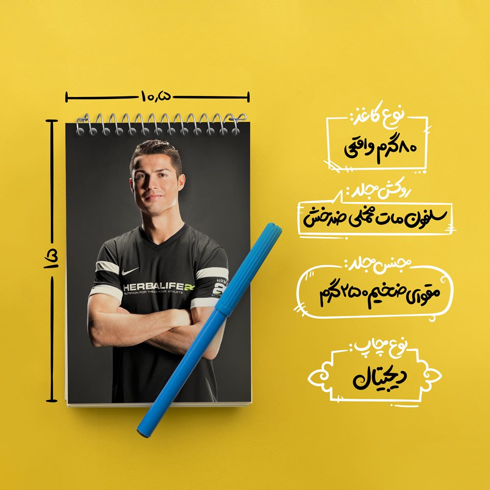 برند خندالو در زمینه تولید انواع دفاتر فانتزی و تحصیلی فعالیت میکند که به دلیل جذابیت ظاهری و طرح های متنوع طرفداران زیادی دارد. دفتر یادداشت خندالو طرح کریستیانو رونالدو محصولی مناسب برای همه عاشقان لوازم التحریر است و همچنین همه کسانی که بنا به موقعیت تحصیل یا شغلشان با دفتر و نوشت افزار زیاد سر و کار دارند. در تولید دفتر یادداشت خندالو طرح کریستیانو رونالدو از نوع صحافی فنر مارپیچ استفاده شده که در این نوع صحافی برگه‌ها به راحتی چرخیده و یا بیرون آورده می شوند.