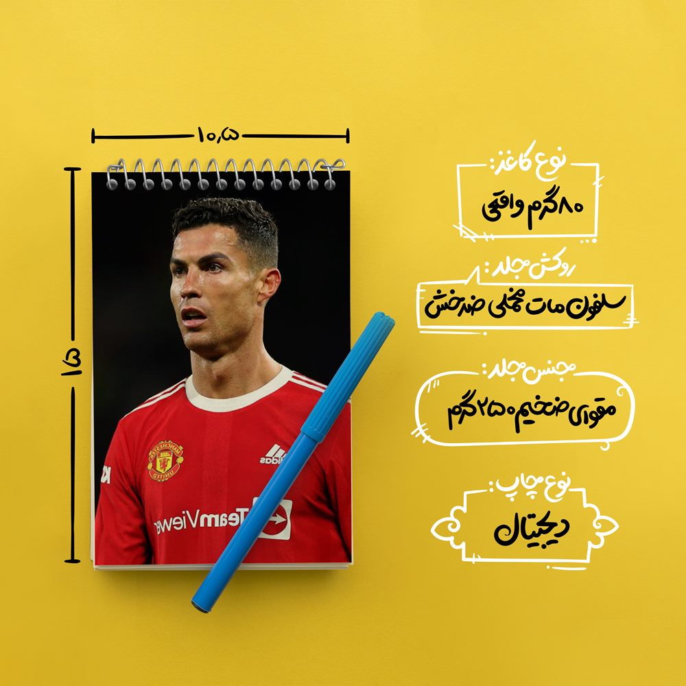 برند خندالو در زمینه تولید انواع دفاتر فانتزی و تحصیلی فعالیت میکند که به دلیل جذابیت ظاهری و طرح های متنوع طرفداران زیادی دارد. دفتر یادداشت خندالو طرح کریستیانو رونالدو محصولی مناسب برای همه عاشقان لوازم التحریر است و همچنین همه کسانی که بنا به موقعیت تحصیل یا شغلشان با دفتر و نوشت افزار زیاد سر و کار دارند. در تولید دفتر یادداشت خندالو طرح کریستیانو رونالدو از نوع صحافی فنر مارپیچ استفاده شده که در این نوع صحافی برگه‌ها به راحتی چرخیده و یا بیرون آورده می شوند.