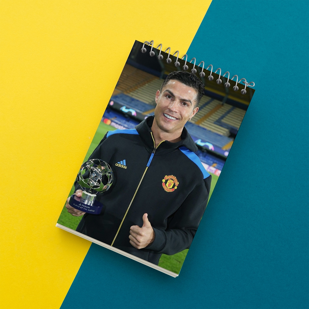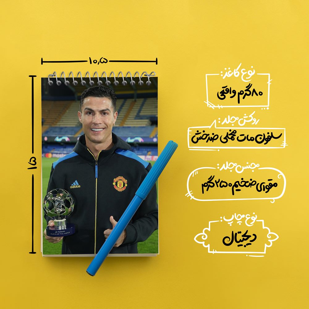 برند خندالو در زمینه تولید انواع دفاتر فانتزی و تحصیلی فعالیت میکند که به دلیل جذابیت ظاهری و طرح های متنوع طرفداران زیادی دارد. دفتر یادداشت خندالو طرح کریستیانو رونالدو محصولی مناسب برای همه عاشقان لوازم التحریر است و همچنین همه کسانی که بنا به موقعیت تحصیل یا شغلشان با دفتر و نوشت افزار زیاد سر و کار دارند. در تولید دفتر یادداشت خندالو طرح کریستیانو رونالدو از نوع صحافی فنر مارپیچ استفاده شده که در این نوع صحافی برگه‌ها به راحتی چرخیده و یا بیرون آورده می شوند.