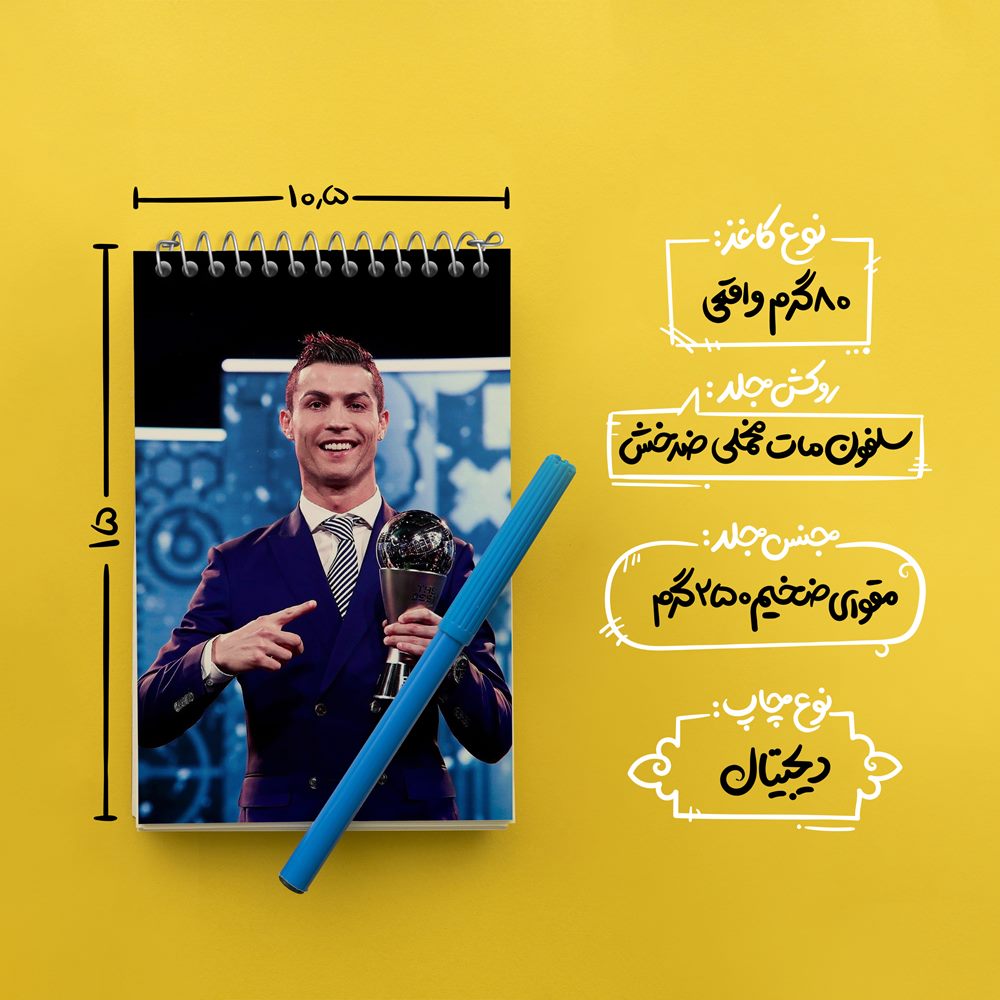 برند خندالو در زمینه تولید انواع دفاتر فانتزی و تحصیلی فعالیت میکند که به دلیل جذابیت ظاهری و طرح های متنوع طرفداران زیادی دارد. دفتر یادداشت خندالو طرح کریستیانو رونالدو محصولی مناسب برای همه عاشقان لوازم التحریر است و همچنین همه کسانی که بنا به موقعیت تحصیل یا شغلشان با دفتر و نوشت افزار زیاد سر و کار دارند. در تولید دفتر یادداشت خندالو طرح کریستیانو رونالدو از نوع صحافی فنر مارپیچ استفاده شده که در این نوع صحافی برگه‌ها به راحتی چرخیده و یا بیرون آورده می شوند.