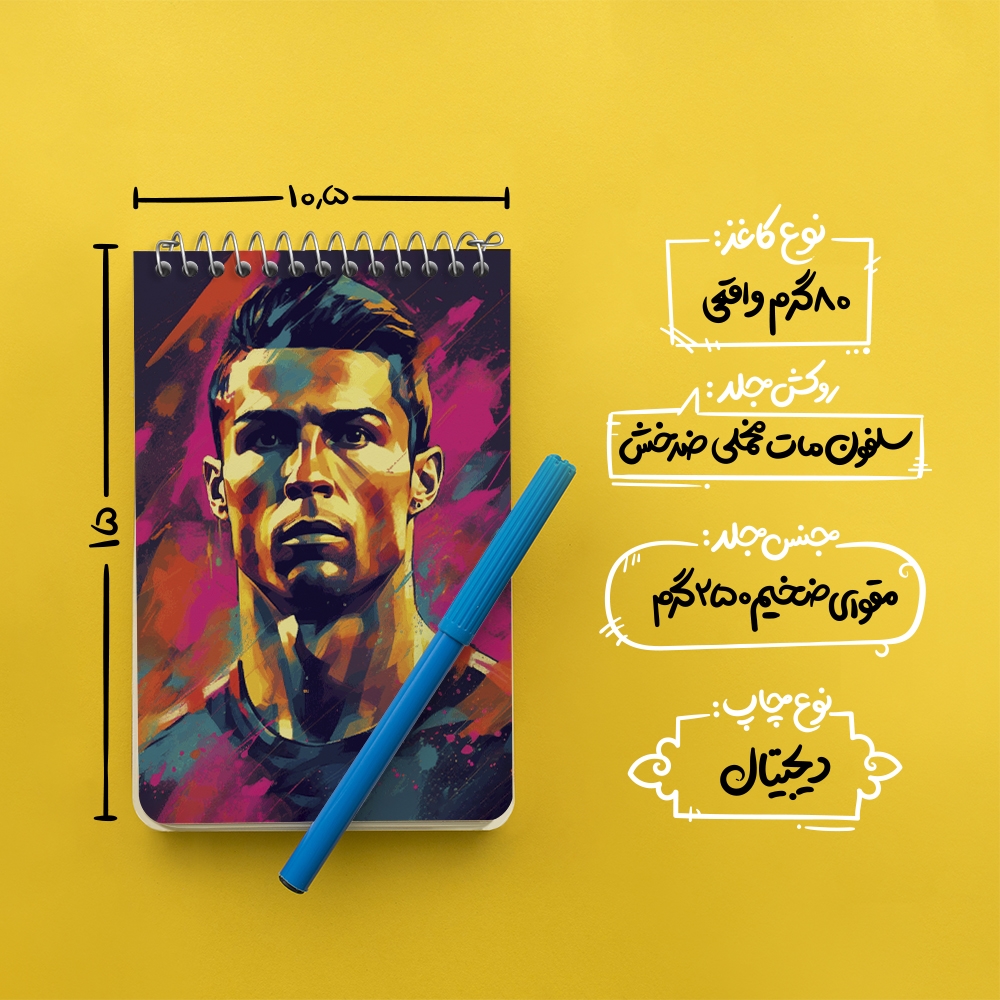 برند خندالو در زمینه تولید انواع دفاتر فانتزی و تحصیلی فعالیت میکند که به دلیل جذابیت ظاهری و طرح های متنوع طرفداران زیادی دارد. دفتر یادداشت خندالو طرح کریستیانو رونالدو محصولی مناسب برای همه عاشقان لوازم التحریر است و همچنین همه کسانی که بنا به موقعیت تحصیل یا شغلشان با دفتر و نوشت افزار زیاد سر و کار دارند. در تولید دفتر یادداشت خندالو طرح کریستیانو رونالدو از نوع صحافی فنر مارپیچ استفاده شده که در این نوع صحافی برگه‌ها به راحتی چرخیده و یا بیرون آورده می شوند.