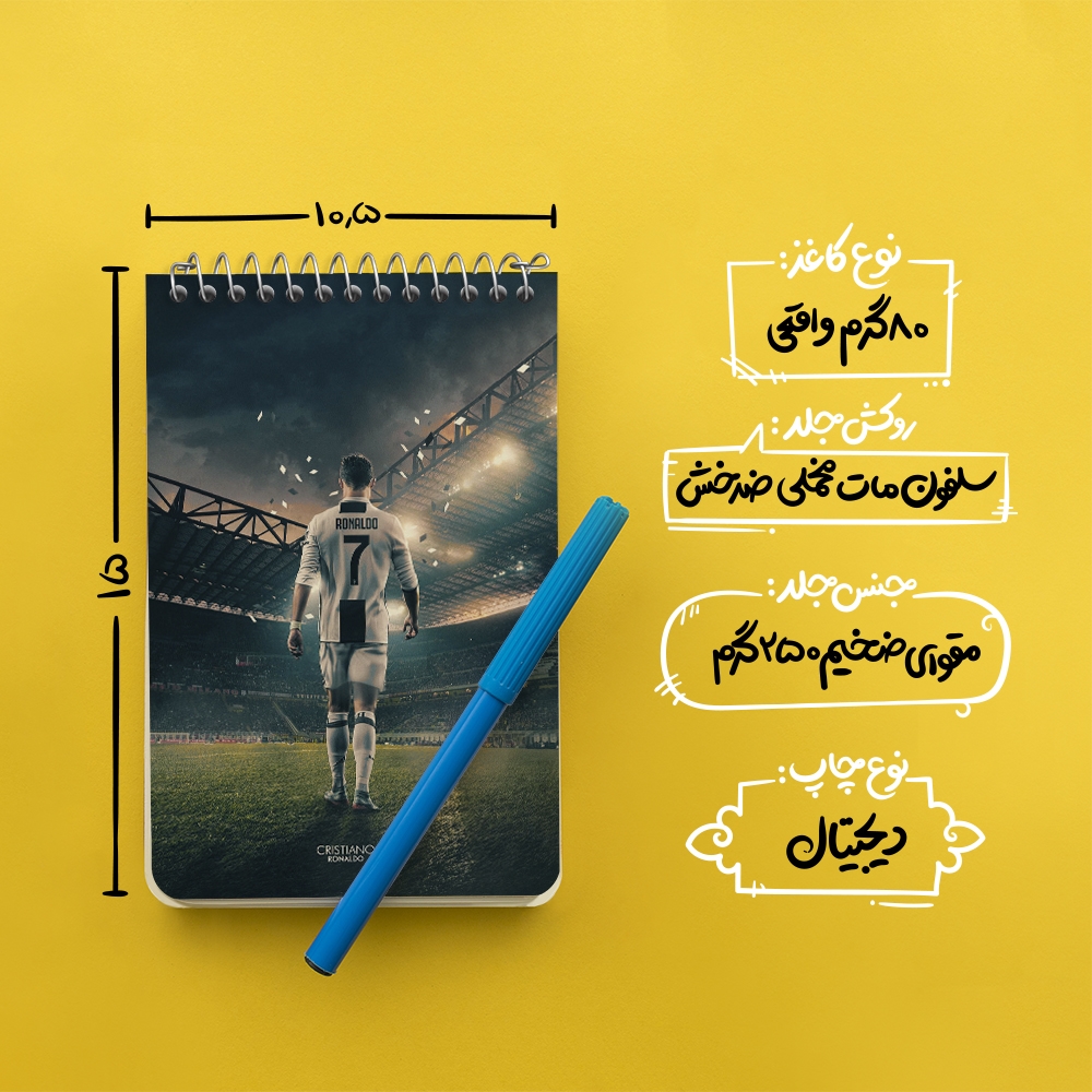 برند خندالو در زمینه تولید انواع دفاتر فانتزی و تحصیلی فعالیت میکند که به دلیل جذابیت ظاهری و طرح های متنوع طرفداران زیادی دارد. دفتر یادداشت خندالو طرح کریستیانو رونالدو محصولی مناسب برای همه عاشقان لوازم التحریر است و همچنین همه کسانی که بنا به موقعیت تحصیل یا شغلشان با دفتر و نوشت افزار زیاد سر و کار دارند. در تولید دفتر یادداشت خندالو طرح کریستیانو رونالدو از نوع صحافی فنر مارپیچ استفاده شده که در این نوع صحافی برگه‌ها به راحتی چرخیده و یا بیرون آورده می شوند.