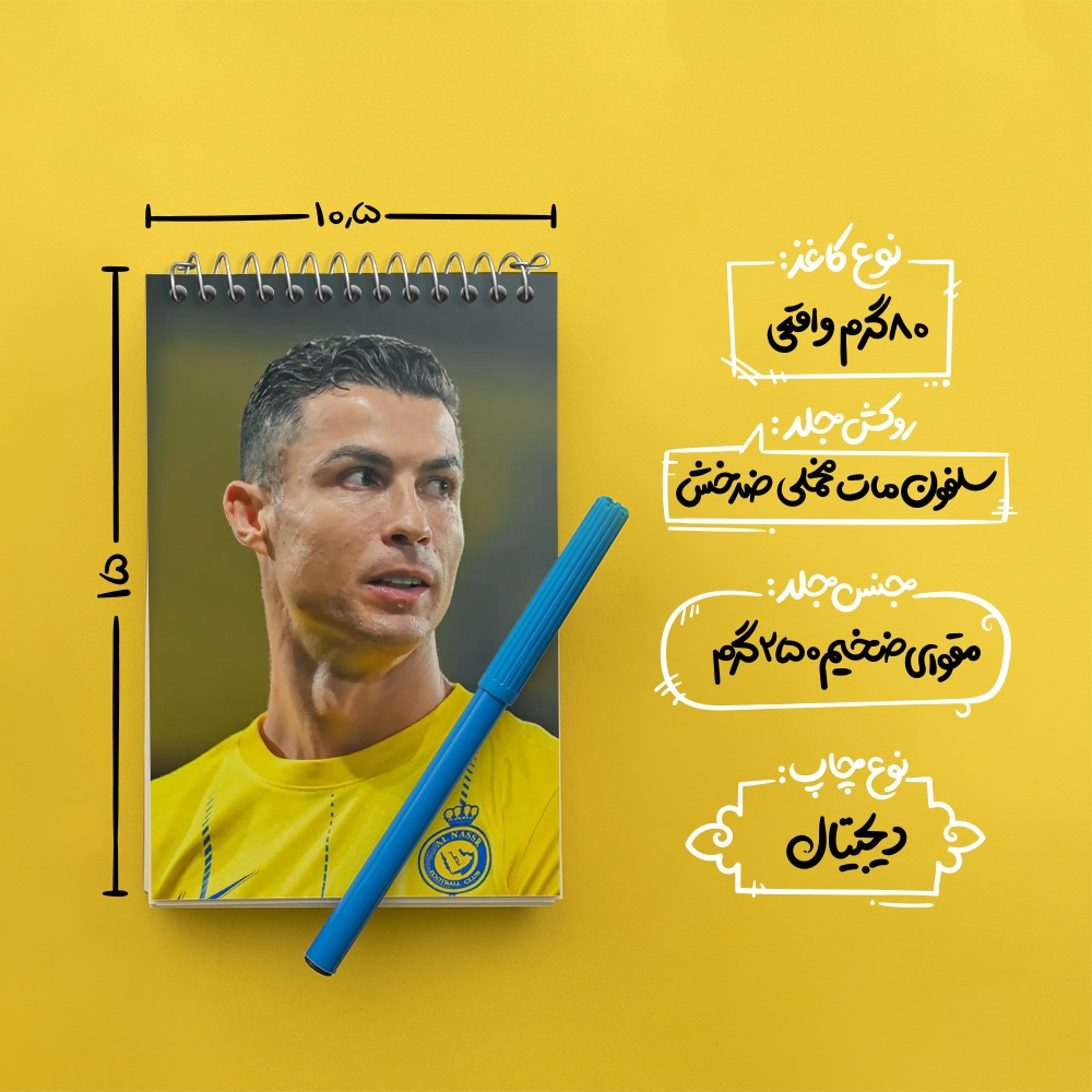 برند خندالو در زمینه تولید انواع دفاتر فانتزی و تحصیلی فعالیت میکند که به دلیل جذابیت ظاهری و طرح های متنوع طرفداران زیادی دارد. دفتر یادداشت خندالو طرح کریستیانو رونالدو محصولی مناسب برای همه عاشقان لوازم التحریر است و همچنین همه کسانی که بنا به موقعیت تحصیل یا شغلشان با دفتر و نوشت افزار زیاد سر و کار دارند. در تولید دفتر یادداشت خندالو طرح کریستیانو رونالدو از نوع صحافی فنر مارپیچ استفاده شده که در این نوع صحافی برگه‌ها به راحتی چرخیده و یا بیرون آورده می شوند.