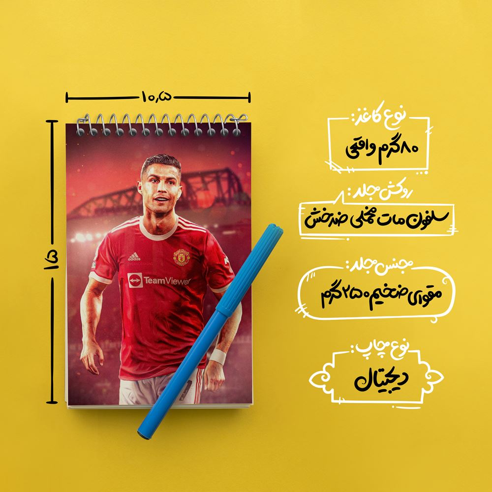 برند خندالو در زمینه تولید انواع دفاتر فانتزی و تحصیلی فعالیت میکند که به دلیل جذابیت ظاهری و طرح های متنوع طرفداران زیادی دارد. دفتر یادداشت خندالو طرح کریستیانو رونالدو محصولی مناسب برای همه عاشقان لوازم التحریر است و همچنین همه کسانی که بنا به موقعیت تحصیل یا شغلشان با دفتر و نوشت افزار زیاد سر و کار دارند. در تولید دفتر یادداشت خندالو طرح کریستیانو رونالدو از نوع صحافی فنر مارپیچ استفاده شده که در این نوع صحافی برگه‌ها به راحتی چرخیده و یا بیرون آورده می شوند.