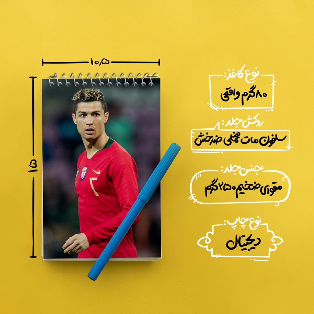 برند خندالو در زمینه تولید انواع دفاتر فانتزی و تحصیلی فعالیت میکند که به دلیل جذابیت ظاهری و طرح های متنوع طرفداران زیادی دارد. دفتر یادداشت خندالو طرح کریستیانو رونالدو محصولی مناسب برای همه عاشقان لوازم التحریر است و همچنین همه کسانی که بنا به موقعیت تحصیل یا شغلشان با دفتر و نوشت افزار زیاد سر و کار دارند. در تولید دفتر یادداشت خندالو طرح کریستیانو رونالدو از نوع صحافی فنر مارپیچ استفاده شده که در این نوع صحافی برگه‌ها به راحتی چرخیده و یا بیرون آورده می شوند.