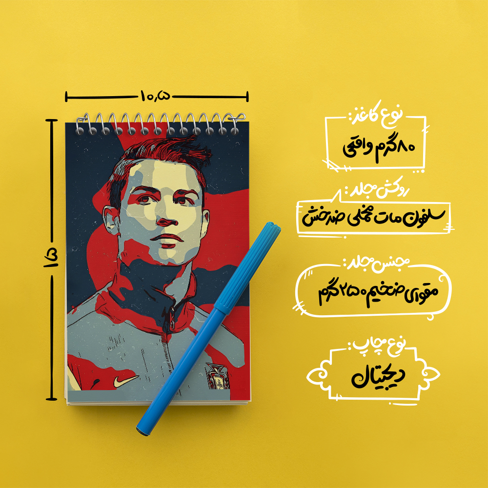 برند خندالو در زمینه تولید انواع دفاتر فانتزی و تحصیلی فعالیت میکند که به دلیل جذابیت ظاهری و طرح های متنوع طرفداران زیادی دارد. دفتر یادداشت خندالو طرح کریستیانو رونالدو محصولی مناسب برای همه عاشقان لوازم التحریر است و همچنین همه کسانی که بنا به موقعیت تحصیل یا شغلشان با دفتر و نوشت افزار زیاد سر و کار دارند. در تولید دفتر یادداشت خندالو طرح کریستیانو رونالدو از نوع صحافی فنر مارپیچ استفاده شده که در این نوع صحافی برگه‌ها به راحتی چرخیده و یا بیرون آورده می شوند.