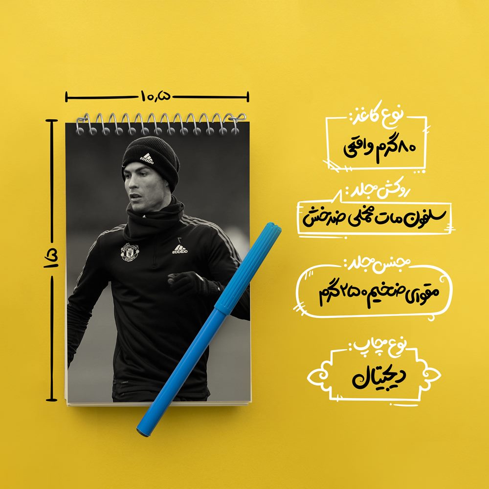 برند خندالو در زمینه تولید انواع دفاتر فانتزی و تحصیلی فعالیت میکند که به دلیل جذابیت ظاهری و طرح های متنوع طرفداران زیادی دارد. دفتر یادداشت خندالو طرح کریستیانو رونالدو محصولی مناسب برای همه عاشقان لوازم التحریر است و همچنین همه کسانی که بنا به موقعیت تحصیل یا شغلشان با دفتر و نوشت افزار زیاد سر و کار دارند. در تولید دفتر یادداشت خندالو طرح کریستیانو رونالدو از نوع صحافی فنر مارپیچ استفاده شده که در این نوع صحافی برگه‌ها به راحتی چرخیده و یا بیرون آورده می شوند.