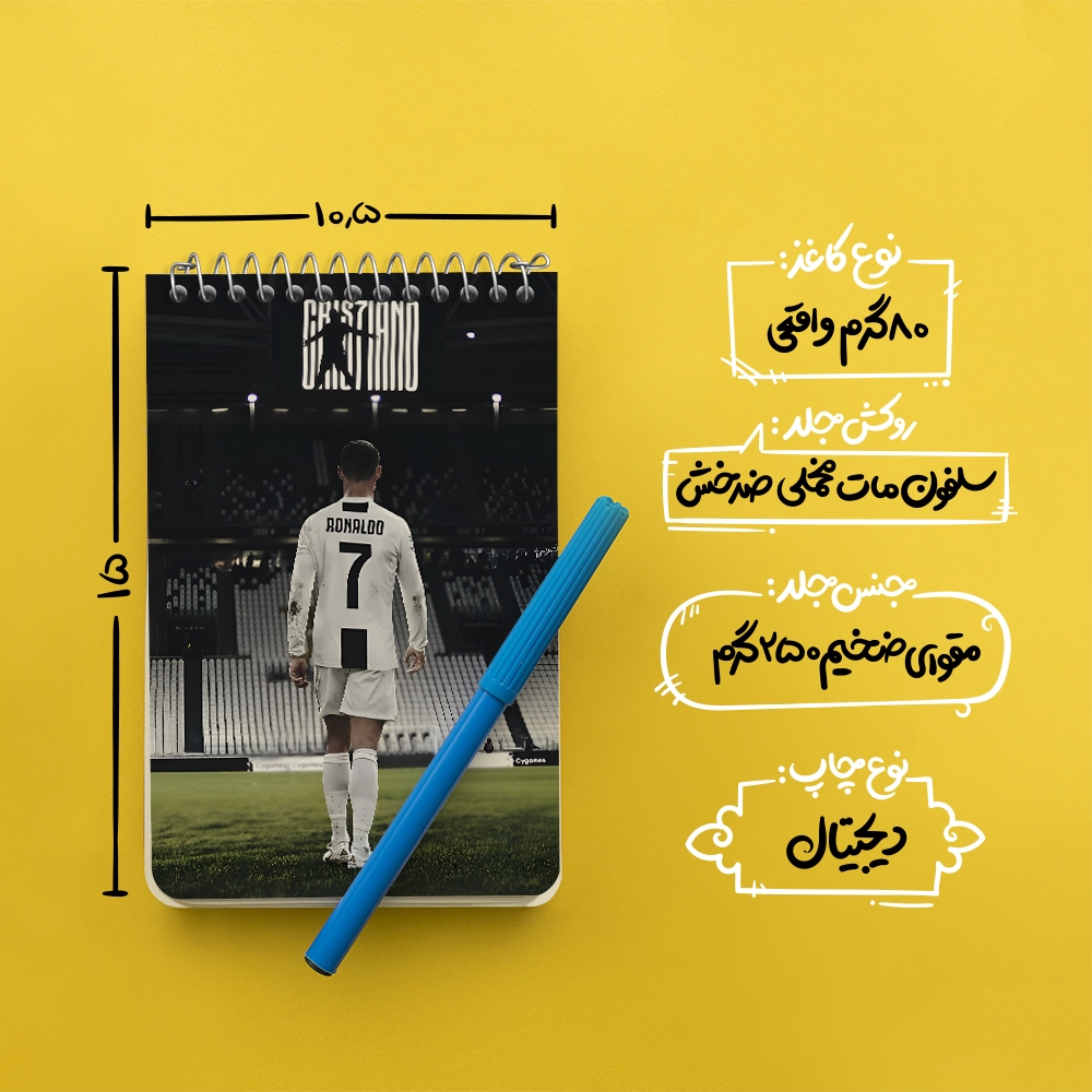 برند خندالو در زمینه تولید انواع دفاتر فانتزی و تحصیلی فعالیت میکند که به دلیل جذابیت ظاهری و طرح های متنوع طرفداران زیادی دارد. دفتر یادداشت خندالو طرح کریستیانو رونالدو محصولی مناسب برای همه عاشقان لوازم التحریر است و همچنین همه کسانی که بنا به موقعیت تحصیل یا شغلشان با دفتر و نوشت افزار زیاد سر و کار دارند. در تولید دفتر یادداشت خندالو طرح کریستیانو رونالدو از نوع صحافی فنر مارپیچ استفاده شده که در این نوع صحافی برگه‌ها به راحتی چرخیده و یا بیرون آورده می شوند.