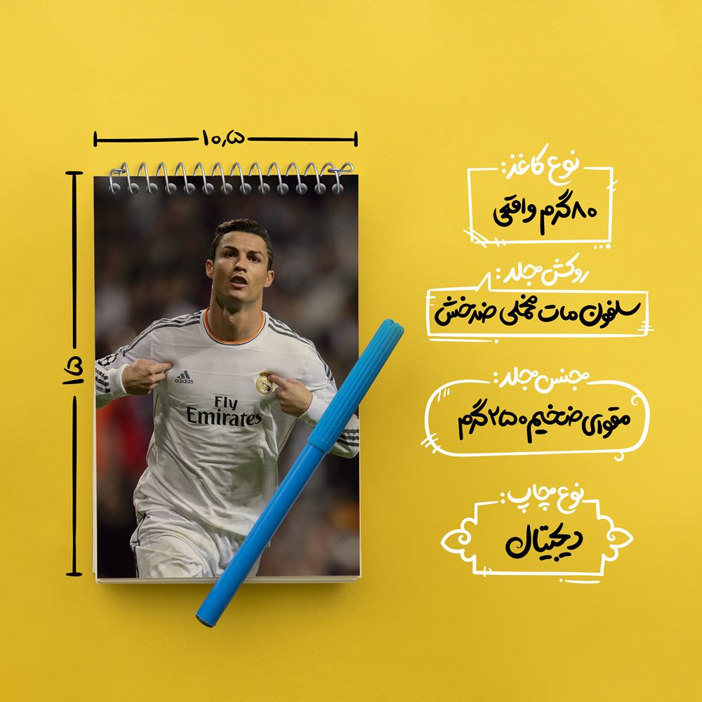 برند خندالو در زمینه تولید انواع دفاتر فانتزی و تحصیلی فعالیت میکند که به دلیل جذابیت ظاهری و طرح های متنوع طرفداران زیادی دارد. دفتر یادداشت خندالو طرح کریستین رونالدو محصولی مناسب برای همه عاشقان لوازم التحریر است و همچنین همه کسانی که بنا به موقعیت تحصیل یا شغلشان با دفتر و نوشت افزار زیاد سر و کار دارند. در تولید دفتر یادداشت خندالو طرح کریستین رونالدو از نوع صحافی فنر مارپیچ استفاده شده که در این نوع صحافی برگهها به راحتی چرخیده و یا بیرون آورده می شوند. دفتر های خندالو دارای جلد انعطاف پذیر از جنس مقوای گلاسه 250 گرم با روکش سلفون مات مخملی است که به شما امکان میدهد از دفتر خود بدون اینکه نگرانی از شکستن یا خراب شدن جلد را داشته باشید استفاده کنید و همچنین در این دفاتر از کاغذ 80 گرم با کیفیت استفاده شده که باعث میشود هنگام نوشتن به خوبی جوهر قلم بر روی صفحه نشسته و از خط خوردگیها جلوگیری کند. دفتر یادداشت خندالو با جنس و دوام مناسب، برگه های کاملاً سفید و خطوط طوسی دقیق را داراست که انسان را به نوشتن منظم و زیبا ترغیب میکند. طراحی کاملاً مناسب این دفاتر، به همراه کیفیت بالا، از آن یک محصول مورد علاقه و قابل اعتماد برای همه مقاطع تحصیلی میسازد. دفتر یادداشت خندالو طرح کریستین رونالدو انتخابی هوشمندانه و مناسب برای افرادی است که به دنبال دفتری با کیفیت و کاربرد عالی هستند. این دفتر، همراه خوبی برای شما در تمام مراحل تحصیل و کار خواهد بود و تجربهای لذتبخش از نوشتن و آموختن را به شما هدیه میدهد.