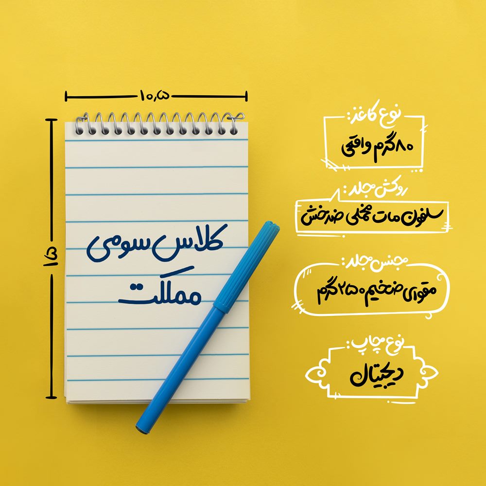 برند خندالو در زمینه تولید انواع دفاتر فانتزی و تحصیلی فعالیت میکند که به دلیل جذابیت ظاهری و طرح های متنوع طرفداران زیادی دارد. دفتر یادداشت خندالو طرح کلاس سومی مملکت محصولی مناسب برای همه عاشقان لوازم التحریر است و همچنین همه کسانی که بنا به موقعیت تحصیل یا شغلشان با دفتر و نوشت افزار زیاد سر و کار دارند. در تولید دفتر یادداشت خندالو طرح کلاس سومی مملکت از نوع صحافی فنر مارپیچ استفاده شده که در این نوع صحافی برگهها به راحتی چرخیده و یا بیرون آورده می شوند. دفتر های خندالو دارای جلد انعطاف پذیر از جنس مقوای گلاسه 250 گرم با روکش سلفون مات مخملی است که به شما امکان میدهد از دفتر خود بدون اینکه نگرانی از شکستن یا خراب شدن جلد را داشته باشید استفاده کنید و همچنین در این دفاتر از کاغذ 80 گرم با کیفیت استفاده شده که باعث میشود هنگام نوشتن به خوبی جوهر قلم بر روی صفحه نشسته و از خط خوردگیها جلوگیری کند. دفتر یادداشت خندالو با جنس و دوام مناسب، برگه های کاملاً سفید و خطوط طوسی دقیق را داراست که انسان را به نوشتن منظم و زیبا ترغیب میکند. طراحی کاملاً مناسب این دفاتر، به همراه کیفیت بالا، از آن یک محصول مورد علاقه و قابل اعتماد برای همه مقاطع تحصیلی میسازد. دفتر یادداشت خندالو طرح کلاس سومی مملکت انتخابی هوشمندانه و مناسب برای افرادی است که به دنبال دفتری با کیفیت و کاربرد عالی هستند. این دفتر، همراه خوبی برای شما در تمام مراحل تحصیل و کار خواهد بود و تجربهای لذتبخش از نوشتن و آموختن را به شما هدیه میدهد.