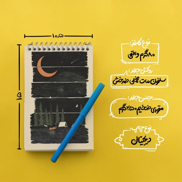 برند خندالو در زمینه تولید انواع دفاتر فانتزی و تحصیلی فعالیت میکند که به دلیل جذابیت ظاهری و طرح های متنوع طرفداران زیادی دارد. دفتر یادداشت خندالو طرح کمپ شبانه محصولی مناسب برای همه عاشقان لوازم التحریر است و همچنین همه کسانی که بنا به موقعیت تحصیل یا شغلشان با دفتر و نوشت افزار زیاد سر و کار دارند. در تولید دفتر یادداشت خندالو طرح کمپ شبانه از نوع صحافی فنر مارپیچ استفاده شده که در این نوع صحافی برگهها به راحتی چرخیده و یا بیرون آورده می شوند. دفتر های خندالو دارای جلد انعطاف پذیر از جنس مقوای گلاسه 250 گرم با روکش سلفون مات مخملی است که به شما امکان میدهد از دفتر خود بدون اینکه نگرانی از شکستن یا خراب شدن جلد را داشته باشید استفاده کنید و همچنین در این دفاتر از کاغذ 80 گرم با کیفیت استفاده شده که باعث میشود هنگام نوشتن به خوبی جوهر قلم بر روی صفحه نشسته و از خط خوردگیها جلوگیری کند. دفتر یادداشت خندالو با جنس و دوام مناسب، برگه های کاملاً سفید و خطوط طوسی دقیق را داراست که انسان را به نوشتن منظم و زیبا ترغیب میکند. طراحی کاملاً مناسب این دفاتر، به همراه کیفیت بالا، از آن یک محصول مورد علاقه و قابل اعتماد برای همه مقاطع تحصیلی میسازد. دفتر یادداشت خندالو طرح کمپ شبانه انتخابی هوشمندانه و مناسب برای افرادی است که به دنبال دفتری با کیفیت و کاربرد عالی هستند. این دفتر، همراه خوبی برای شما در تمام مراحل تحصیل و کار خواهد بود و تجربهای لذتبخش از نوشتن و آموختن را به شما هدیه میدهد.