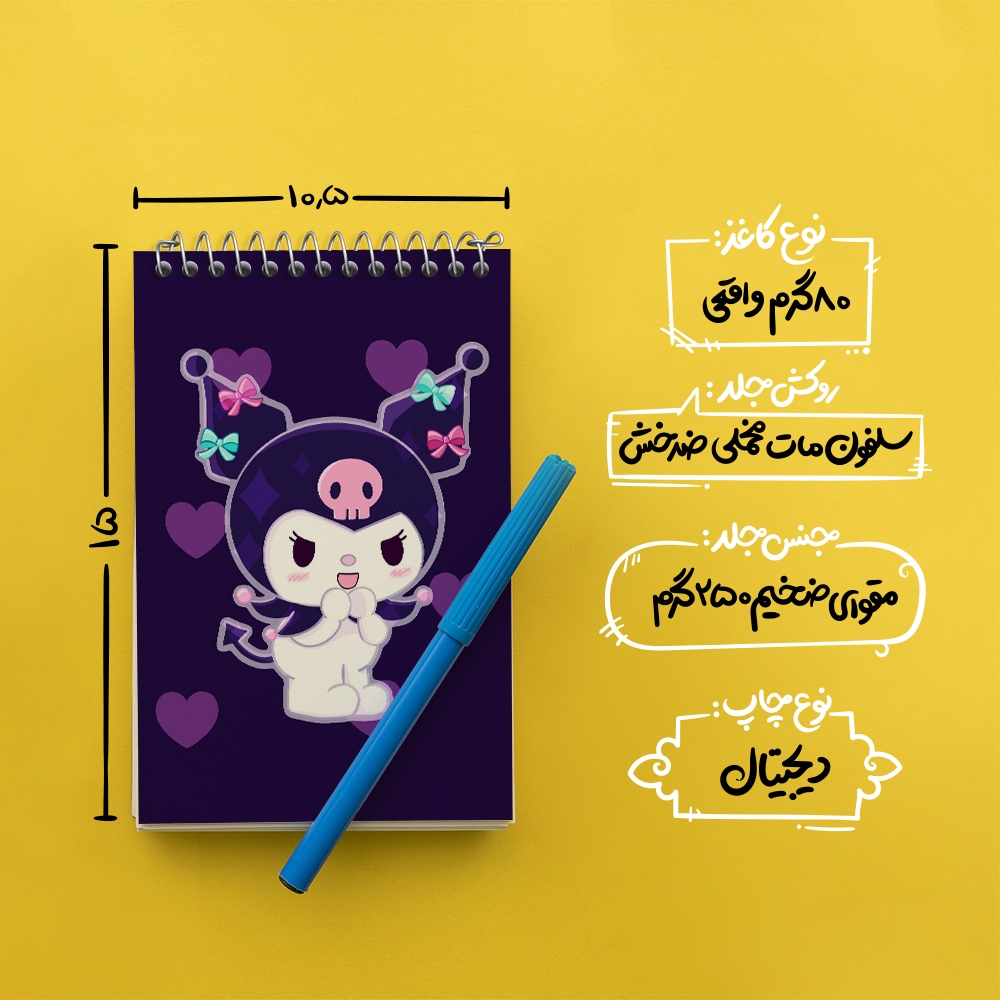 برند خندالو در زمینه تولید انواع دفاتر فانتزی و تحصیلی فعالیت میکند که به دلیل جذابیت ظاهری و طرح های متنوع طرفداران زیادی دارد. دفتر یادداشت خندالو طرح کورومی و مای ملودی محصولی مناسب برای همه عاشقان لوازم التحریر است و همچنین همه کسانی که بنا به موقعیت تحصیل یا شغلشان با دفتر و نوشت افزار زیاد سر و کار دارند. در تولید دفتر یادداشت خندالو طرح کورومی و مای ملودی از نوع صحافی فنر مارپیچ استفاده شده که در این نوع صحافی برگه‌ها به راحتی چرخیده و یا بیرون آورده می شوند.