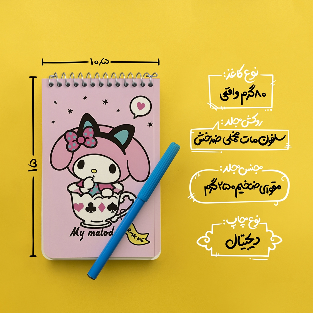 برند خندالو در زمینه تولید انواع دفاتر فانتزی و تحصیلی فعالیت میکند که به دلیل جذابیت ظاهری و طرح های متنوع طرفداران زیادی دارد. دفتر یادداشت خندالو طرح کورومی و مای ملودی محصولی مناسب برای همه عاشقان لوازم التحریر است و همچنین همه کسانی که بنا به موقعیت تحصیل یا شغلشان با دفتر و نوشت افزار زیاد سر و کار دارند. در تولید دفتر یادداشت خندالو طرح کورومی و مای ملودی از نوع صحافی فنر مارپیچ استفاده شده که در این نوع صحافی برگه‌ها به راحتی چرخیده و یا بیرون آورده می شوند.