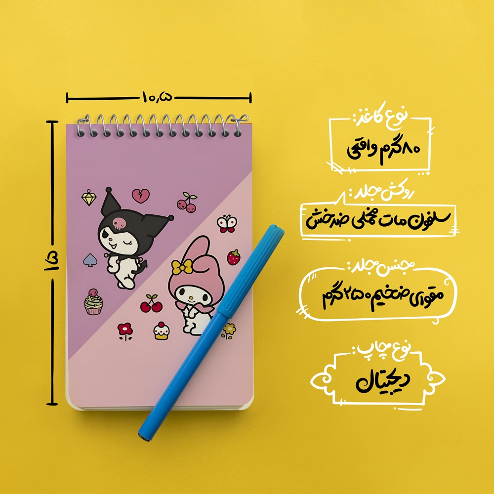 برند خندالو در زمینه تولید انواع دفاتر فانتزی و تحصیلی فعالیت میکند که به دلیل جذابیت ظاهری و طرح های متنوع طرفداران زیادی دارد. دفتر یادداشت خندالو طرح کورومی و مای ملودی محصولی مناسب برای همه عاشقان لوازم التحریر است و همچنین همه کسانی که بنا به موقعیت تحصیل یا شغلشان با دفتر و نوشت افزار زیاد سر و کار دارند. در تولید دفتر یادداشت خندالو طرح کورومی و مای ملودی از نوع صحافی فنر مارپیچ استفاده شده که در این نوع صحافی برگه‌ها به راحتی چرخیده و یا بیرون آورده می شوند.
