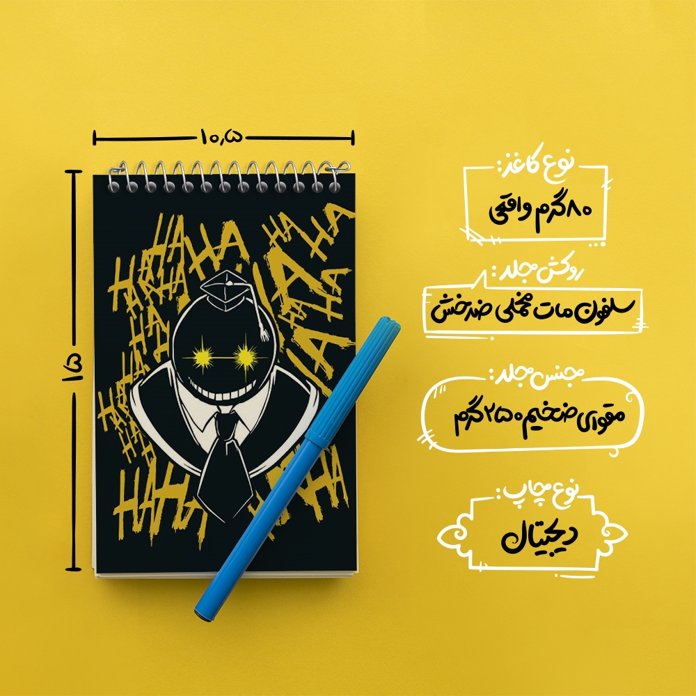 برند خندالو در زمینه تولید انواع دفاتر فانتزی و تحصیلی فعالیت میکند که به دلیل جذابیت ظاهری و طرح های متنوع طرفداران زیادی دارد. دفتر یادداشت خندالو طرح کورو سنسی انیمه کلاس آدمکشی محصولی مناسب برای همه عاشقان لوازم التحریر است و همچنین همه کسانی که بنا به موقعیت تحصیل یا شغلشان با دفتر و نوشت افزار زیاد سر و کار دارند. در تولید دفتر یادداشت خندالو طرح کورو سنسی انیمه کلاس آدمکشی از نوع صحافی فنر مارپیچ استفاده شده که در این نوع صحافی برگهها به راحتی چرخیده و یا بیرون آورده می شوند. دفتر های خندالو دارای جلد انعطاف پذیر از جنس مقوای گلاسه 250 گرم با روکش سلفون مات مخملی است که به شما امکان میدهد از دفتر خود بدون اینکه نگرانی از شکستن یا خراب شدن جلد را داشته باشید استفاده کنید و همچنین در این دفاتر از کاغذ 80 گرم با کیفیت استفاده شده که باعث میشود هنگام نوشتن به خوبی جوهر قلم بر روی صفحه نشسته و از خط خوردگیها جلوگیری کند. دفتر یادداشت خندالو با جنس و دوام مناسب، برگه های کاملاً سفید و خطوط طوسی دقیق را داراست که انسان را به نوشتن منظم و زیبا ترغیب میکند. طراحی کاملاً مناسب این دفاتر، به همراه کیفیت بالا، از آن یک محصول مورد علاقه و قابل اعتماد برای همه مقاطع تحصیلی میسازد. دفتر یادداشت خندالو طرح کورو سنسی انیمه کلاس آدمکشی انتخابی هوشمندانه و مناسب برای افرادی است که به دنبال دفتری با کیفیت و کاربرد عالی هستند. این دفتر، همراه خوبی برای شما در تمام مراحل تحصیل و کار خواهد بود و تجربهای لذتبخش از نوشتن و آموختن را به شما هدیه میدهد.
