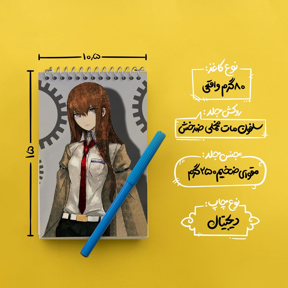برند خندالو در زمینه تولید انواع دفاتر فانتزی و تحصیلی فعالیت میکند که به دلیل جذابیت ظاهری و طرح های متنوع طرفداران زیادی دارد. دفتر یادداشت خندالو طرح کوریسو ماکیسه انیمه اشتاینز گیت محصولی مناسب برای همه عاشقان لوازم التحریر است و همچنین همه کسانی که بنا به موقعیت تحصیل یا شغلشان با دفتر و نوشت افزار زیاد سر و کار دارند. در تولید دفتر یادداشت خندالو طرح کوریسو ماکیسه انیمه اشتاینز گیت از نوع صحافی فنر مارپیچ استفاده شده که در این نوع صحافی برگهها به راحتی چرخیده و یا بیرون آورده می شوند. دفتر های خندالو دارای جلد انعطاف پذیر از جنس مقوای گلاسه 250 گرم با روکش سلفون مات مخملی است که به شما امکان میدهد از دفتر خود بدون اینکه نگرانی از شکستن یا خراب شدن جلد را داشته باشید استفاده کنید و همچنین در این دفاتر از کاغذ 80 گرم با کیفیت استفاده شده که باعث میشود هنگام نوشتن به خوبی جوهر قلم بر روی صفحه نشسته و از خط خوردگیها جلوگیری کند. دفتر یادداشت خندالو با جنس و دوام مناسب، برگه های کاملاً سفید و خطوط طوسی دقیق را داراست که انسان را به نوشتن منظم و زیبا ترغیب میکند. طراحی کاملاً مناسب این دفاتر، به همراه کیفیت بالا، از آن یک محصول مورد علاقه و قابل اعتماد برای همه مقاطع تحصیلی میسازد. دفتر یادداشت خندالو طرح کوریسو ماکیسه انیمه اشتاینز گیت انتخابی هوشمندانه و مناسب برای افرادی است که به دنبال دفتری با کیفیت و کاربرد عالی هستند. این دفتر، همراه خوبی برای شما در تمام مراحل تحصیل و کار خواهد بود و تجربهای لذتبخش از نوشتن و آموختن را به شما هدیه میدهد.
