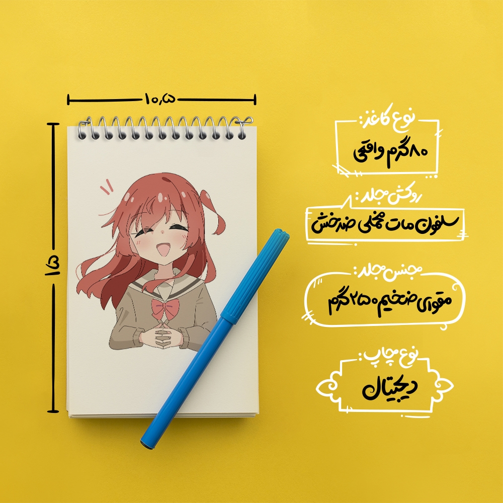 برند خندالو در زمینه تولید انواع دفاتر فانتزی و تحصیلی فعالیت میکند که به دلیل جذابیت ظاهری و طرح های متنوع طرفداران زیادی دارد. دفتر یادداشت خندالو طرح کیتا انیمه بوچی راک محصولی مناسب برای همه عاشقان لوازم التحریر است و همچنین همه کسانی که بنا به موقعیت تحصیل یا شغلشان با دفتر و نوشت افزار زیاد سر و کار دارند. در تولید دفتر یادداشت خندالو طرح کیتا انیمه بوچی راک از نوع صحافی فنر مارپیچ استفاده شده که در این نوع صحافی برگه‌ها به راحتی چرخیده و یا بیرون آورده می شوند.