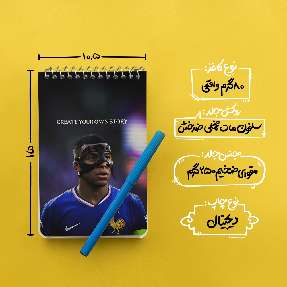 برند خندالو در زمینه تولید انواع دفاتر فانتزی و تحصیلی فعالیت میکند که به دلیل جذابیت ظاهری و طرح های متنوع طرفداران زیادی دارد. دفتر یادداشت خندالو طرح کیلیان امباپه محصولی مناسب برای همه عاشقان لوازم التحریر است و همچنین همه کسانی که بنا به موقعیت تحصیل یا شغلشان با دفتر و نوشت افزار زیاد سر و کار دارند. در تولید دفتر یادداشت خندالو طرح کیلیان امباپه از نوع صحافی فنر مارپیچ استفاده شده که در این نوع صحافی برگهها به راحتی چرخیده و یا بیرون آورده می شوند. دفتر های خندالو دارای جلد انعطاف پذیر از جنس مقوای گلاسه 250 گرم با روکش سلفون مات مخملی است که به شما امکان میدهد از دفتر خود بدون اینکه نگرانی از شکستن یا خراب شدن جلد را داشته باشید استفاده کنید و همچنین در این دفاتر از کاغذ 80 گرم با کیفیت استفاده شده که باعث میشود هنگام نوشتن به خوبی جوهر قلم بر روی صفحه نشسته و از خط خوردگیها جلوگیری کند. دفتر یادداشت خندالو با جنس و دوام مناسب، برگه های کاملاً سفید و خطوط طوسی دقیق را داراست که انسان را به نوشتن منظم و زیبا ترغیب میکند. طراحی کاملاً مناسب این دفاتر، به همراه کیفیت بالا، از آن یک محصول مورد علاقه و قابل اعتماد برای همه مقاطع تحصیلی میسازد. دفتر یادداشت خندالو طرح کیلیان امباپه انتخابی هوشمندانه و مناسب برای افرادی است که به دنبال دفتری با کیفیت و کاربرد عالی هستند. این دفتر، همراه خوبی برای شما در تمام مراحل تحصیل و کار خواهد بود و تجربهای لذتبخش از نوشتن و آموختن را به شما هدیه میدهد.