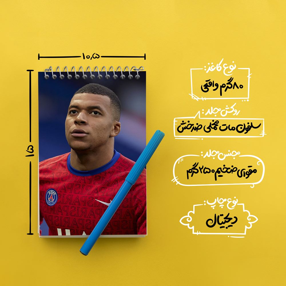 برند خندالو در زمینه تولید انواع دفاتر فانتزی و تحصیلی فعالیت میکند که به دلیل جذابیت ظاهری و طرح های متنوع طرفداران زیادی دارد. دفتر یادداشت خندالو طرح کیلیان امباپه محصولی مناسب برای همه عاشقان لوازم التحریر است و همچنین همه کسانی که بنا به موقعیت تحصیل یا شغلشان با دفتر و نوشت افزار زیاد سر و کار دارند. در تولید دفتر یادداشت خندالو طرح کیلیان امباپه از نوع صحافی فنر مارپیچ استفاده شده که در این نوع صحافی برگهها به راحتی چرخیده و یا بیرون آورده می شوند. دفتر های خندالو دارای جلد انعطاف پذیر از جنس مقوای گلاسه 250 گرم با روکش سلفون مات مخملی است که به شما امکان میدهد از دفتر خود بدون اینکه نگرانی از شکستن یا خراب شدن جلد را داشته باشید استفاده کنید و همچنین در این دفاتر از کاغذ 80 گرم با کیفیت استفاده شده که باعث میشود هنگام نوشتن به خوبی جوهر قلم بر روی صفحه نشسته و از خط خوردگیها جلوگیری کند. دفتر یادداشت خندالو با جنس و دوام مناسب، برگه های کاملاً سفید و خطوط طوسی دقیق را داراست که انسان را به نوشتن منظم و زیبا ترغیب میکند. طراحی کاملاً مناسب این دفاتر، به همراه کیفیت بالا، از آن یک محصول مورد علاقه و قابل اعتماد برای همه مقاطع تحصیلی میسازد. دفتر یادداشت خندالو طرح کیلیان امباپه انتخابی هوشمندانه و مناسب برای افرادی است که به دنبال دفتری با کیفیت و کاربرد عالی هستند. این دفتر، همراه خوبی برای شما در تمام مراحل تحصیل و کار خواهد بود و تجربهای لذتبخش از نوشتن و آموختن را به شما هدیه میدهد.