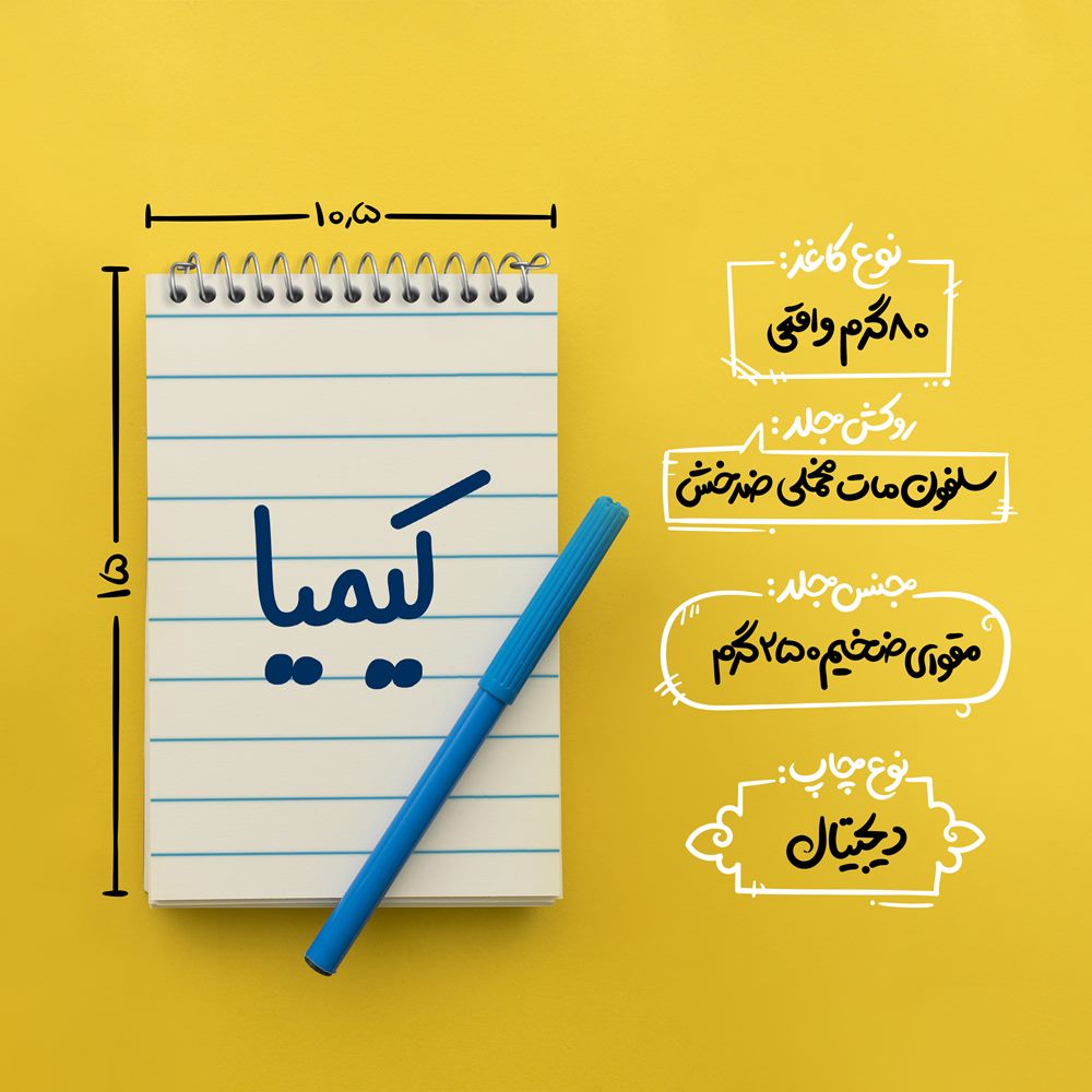 برند خندالو در زمینه تولید انواع دفاتر فانتزی و تحصیلی فعالیت میکند که به دلیل جذابیت ظاهری و طرح های متنوع طرفداران زیادی دارد. دفتر یادداشت خندالو طرح کیمیا محصولی مناسب برای همه عاشقان لوازم التحریر است و همچنین همه کسانی که بنا به موقعیت تحصیل یا شغلشان با دفتر و نوشت افزار زیاد سر و کار دارند. در تولید دفتر یادداشت خندالو طرح کیمیا از نوع صحافی فنر مارپیچ استفاده شده که در این نوع صحافی برگهها به راحتی چرخیده و یا بیرون آورده می شوند. دفتر های خندالو دارای جلد انعطاف پذیر از جنس مقوای گلاسه 250 گرم با روکش سلفون مات مخملی است که به شما امکان میدهد از دفتر خود بدون اینکه نگرانی از شکستن یا خراب شدن جلد را داشته باشید استفاده کنید و همچنین در این دفاتر از کاغذ 80 گرم با کیفیت استفاده شده که باعث میشود هنگام نوشتن به خوبی جوهر قلم بر روی صفحه نشسته و از خط خوردگیها جلوگیری کند. دفتر یادداشت خندالو با جنس و دوام مناسب، برگه های کاملاً سفید و خطوط طوسی دقیق را داراست که انسان را به نوشتن منظم و زیبا ترغیب میکند. طراحی کاملاً مناسب این دفاتر، به همراه کیفیت بالا، از آن یک محصول مورد علاقه و قابل اعتماد برای همه مقاطع تحصیلی میسازد. دفتر یادداشت خندالو طرح کیمیا انتخابی هوشمندانه و مناسب برای افرادی است که به دنبال دفتری با کیفیت و کاربرد عالی هستند. این دفتر، همراه خوبی برای شما در تمام مراحل تحصیل و کار خواهد بود و تجربهای لذتبخش از نوشتن و آموختن را به شما هدیه میدهد.