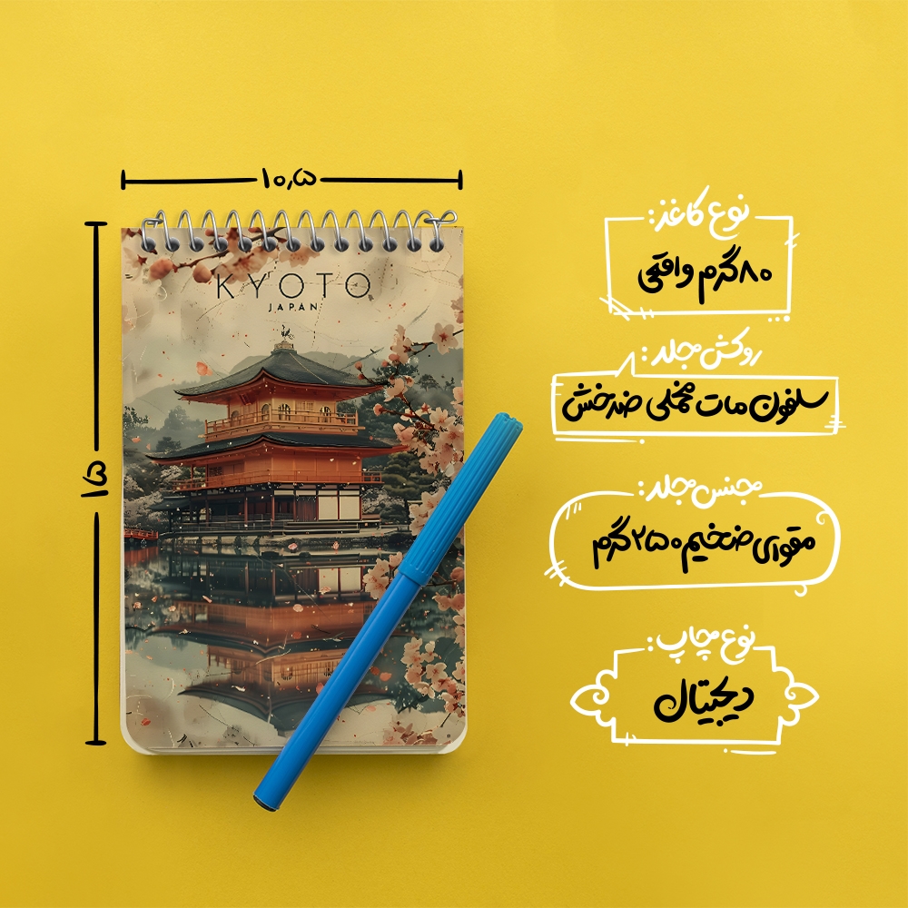 برند خندالو در زمینه تولید انواع دفاتر فانتزی و تحصیلی فعالیت میکند که به دلیل جذابیت ظاهری و طرح های متنوع طرفداران زیادی دارد. دفتر یادداشت خندالو طرح کیوتو ژاپن محصولی مناسب برای همه عاشقان لوازم التحریر است و همچنین همه کسانی که بنا به موقعیت تحصیل یا شغلشان با دفتر و نوشت افزار زیاد سر و کار دارند. در تولید دفتر یادداشت خندالو طرح کیوتو ژاپن از نوع صحافی فنر مارپیچ استفاده شده که در این نوع صحافی برگه‌ها به راحتی چرخیده و یا بیرون آورده می شوند.