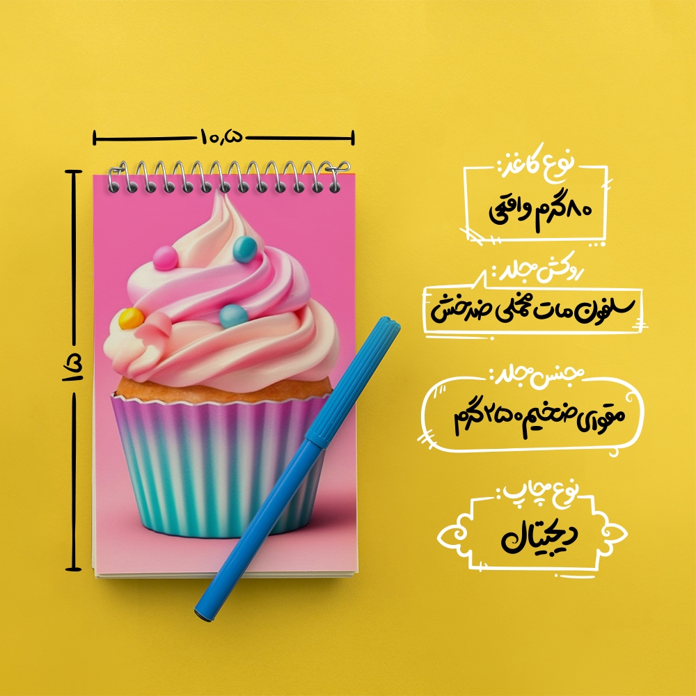 برند خندالو در زمینه تولید انواع دفاتر فانتزی و تحصیلی فعالیت میکند که به دلیل جذابیت ظاهری و طرح های متنوع طرفداران زیادی دارد. دفتر یادداشت خندالو طرح کیک و شیرینی پزی محصولی مناسب برای همه عاشقان لوازم التحریر است و همچنین همه کسانی که بنا به موقعیت تحصیل یا شغلشان با دفتر و نوشت افزار زیاد سر و کار دارند. در تولید دفتر یادداشت خندالو طرح کیک و شیرینی پزی از نوع صحافی فنر مارپیچ استفاده شده که در این نوع صحافی برگه‌ها به راحتی چرخیده و یا بیرون آورده می شوند.