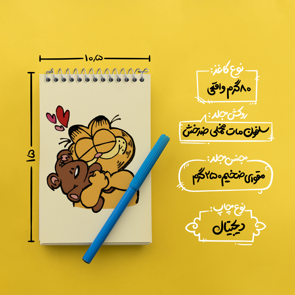 برند خندالو در زمینه تولید انواع دفاتر فانتزی و تحصیلی فعالیت میکند که به دلیل جذابیت ظاهری و طرح های متنوع طرفداران زیادی دارد. دفتر یادداشت خندالو طرح گارفیلد (Garfield) محصولی مناسب برای همه عاشقان لوازم التحریر است و همچنین همه کسانی که بنا به موقعیت تحصیل یا شغلشان با دفتر و نوشت افزار زیاد سر و کار دارند. در تولید دفتر یادداشت خندالو طرح گارفیلد (Garfield) از نوع صحافی فنر مارپیچ استفاده شده که در این نوع صحافی برگه‌ها به راحتی چرخیده و یا بیرون آورده می شوند.