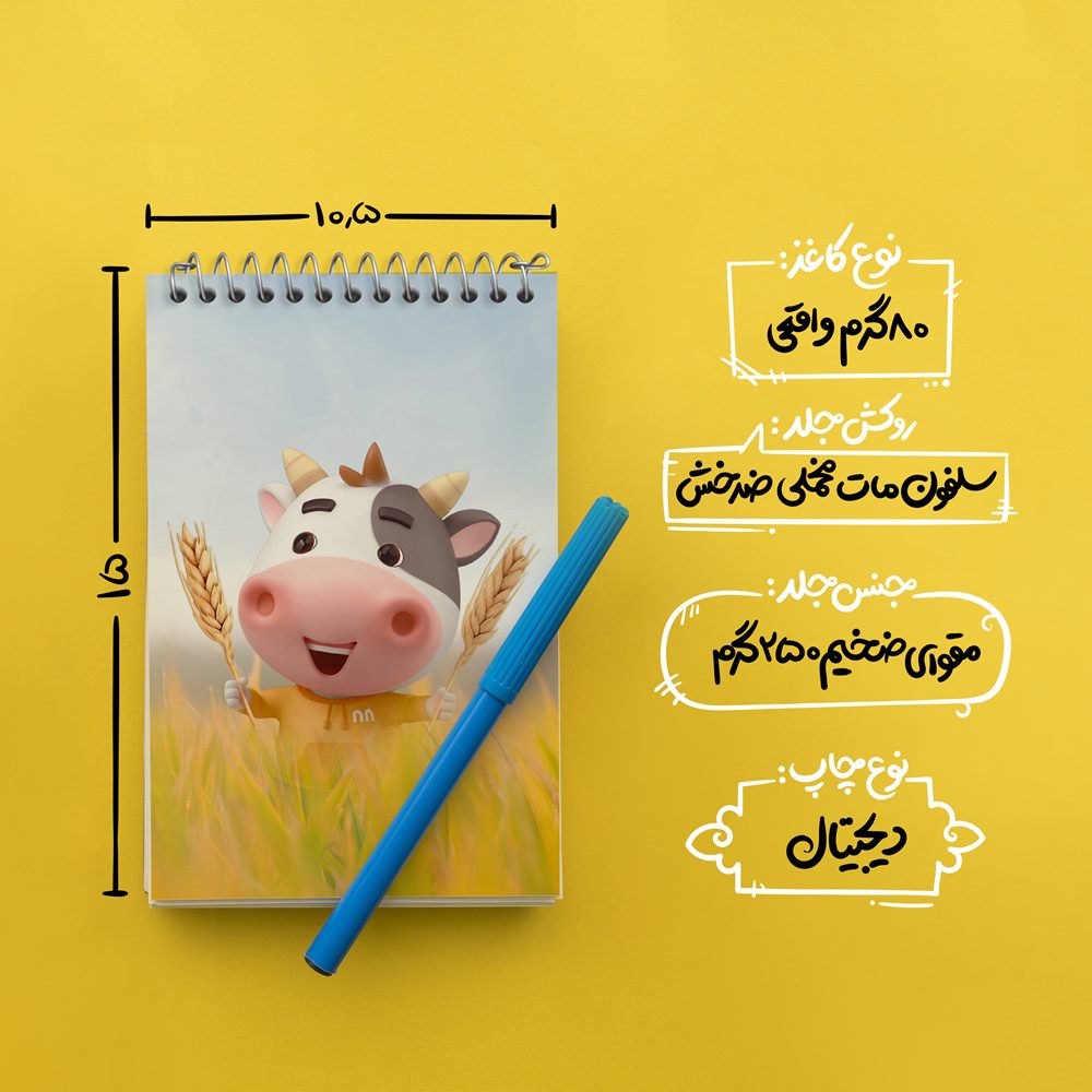 برند خندالو در زمینه تولید انواع دفاتر فانتزی و تحصیلی فعالیت میکند که به دلیل جذابیت ظاهری و طرح های متنوع طرفداران زیادی دارد. دفتر یادداشت خندالو طرح گاو محصولی مناسب برای همه عاشقان لوازم التحریر است و همچنین همه کسانی که بنا به موقعیت تحصیل یا شغلشان با دفتر و نوشت افزار زیاد سر و کار دارند. در تولید دفتر یادداشت خندالو طرح گاو از نوع صحافی فنر مارپیچ استفاده شده که در این نوع صحافی برگه‌ها به راحتی چرخیده و یا بیرون آورده می شوند.