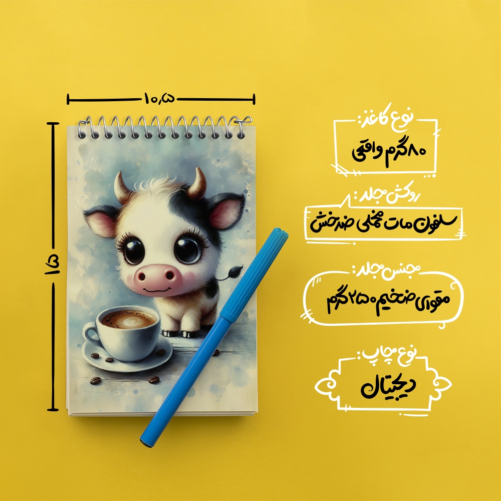 برند خندالو در زمینه تولید انواع دفاتر فانتزی و تحصیلی فعالیت میکند که به دلیل جذابیت ظاهری و طرح های متنوع طرفداران زیادی دارد. دفتر یادداشت خندالو طرح گاو کیوت محصولی مناسب برای همه عاشقان لوازم التحریر است و همچنین همه کسانی که بنا به موقعیت تحصیل یا شغلشان با دفتر و نوشت افزار زیاد سر و کار دارند. در تولید دفتر یادداشت خندالو طرح گاو کیوت از نوع صحافی فنر مارپیچ استفاده شده که در این نوع صحافی برگهها به راحتی چرخیده و یا بیرون آورده می شوند. دفتر های خندالو دارای جلد انعطاف پذیر از جنس مقوای گلاسه 250 گرم با روکش سلفون مات مخملی است که به شما امکان میدهد از دفتر خود بدون اینکه نگرانی از شکستن یا خراب شدن جلد را داشته باشید استفاده کنید و همچنین در این دفاتر از کاغذ 80 گرم با کیفیت استفاده شده که باعث میشود هنگام نوشتن به خوبی جوهر قلم بر روی صفحه نشسته و از خط خوردگیها جلوگیری کند. دفتر یادداشت خندالو با جنس و دوام مناسب، برگه های کاملاً سفید و خطوط طوسی دقیق را داراست که انسان را به نوشتن منظم و زیبا ترغیب میکند. طراحی کاملاً مناسب این دفاتر، به همراه کیفیت بالا، از آن یک محصول مورد علاقه و قابل اعتماد برای همه مقاطع تحصیلی میسازد. دفتر یادداشت خندالو طرح گاو کیوت انتخابی هوشمندانه و مناسب برای افرادی است که به دنبال دفتری با کیفیت و کاربرد عالی هستند. این دفتر، همراه خوبی برای شما در تمام مراحل تحصیل و کار خواهد بود و تجربهای لذتبخش از نوشتن و آموختن را به شما هدیه میدهد.