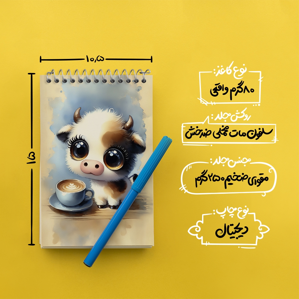 برند خندالو در زمینه تولید انواع دفاتر فانتزی و تحصیلی فعالیت میکند که به دلیل جذابیت ظاهری و طرح های متنوع طرفداران زیادی دارد. دفتر یادداشت خندالو طرح گاو کیوت محصولی مناسب برای همه عاشقان لوازم التحریر است و همچنین همه کسانی که بنا به موقعیت تحصیل یا شغلشان با دفتر و نوشت افزار زیاد سر و کار دارند. در تولید دفتر یادداشت خندالو طرح گاو کیوت از نوع صحافی فنر مارپیچ استفاده شده که در این نوع صحافی برگهها به راحتی چرخیده و یا بیرون آورده می شوند. دفتر های خندالو دارای جلد انعطاف پذیر از جنس مقوای گلاسه 250 گرم با روکش سلفون مات مخملی است که به شما امکان میدهد از دفتر خود بدون اینکه نگرانی از شکستن یا خراب شدن جلد را داشته باشید استفاده کنید و همچنین در این دفاتر از کاغذ 80 گرم با کیفیت استفاده شده که باعث میشود هنگام نوشتن به خوبی جوهر قلم بر روی صفحه نشسته و از خط خوردگیها جلوگیری کند. دفتر یادداشت خندالو با جنس و دوام مناسب، برگه های کاملاً سفید و خطوط طوسی دقیق را داراست که انسان را به نوشتن منظم و زیبا ترغیب میکند. طراحی کاملاً مناسب این دفاتر، به همراه کیفیت بالا، از آن یک محصول مورد علاقه و قابل اعتماد برای همه مقاطع تحصیلی میسازد. دفتر یادداشت خندالو طرح گاو کیوت انتخابی هوشمندانه و مناسب برای افرادی است که به دنبال دفتری با کیفیت و کاربرد عالی هستند. این دفتر، همراه خوبی برای شما در تمام مراحل تحصیل و کار خواهد بود و تجربهای لذتبخش از نوشتن و آموختن را به شما هدیه میدهد.