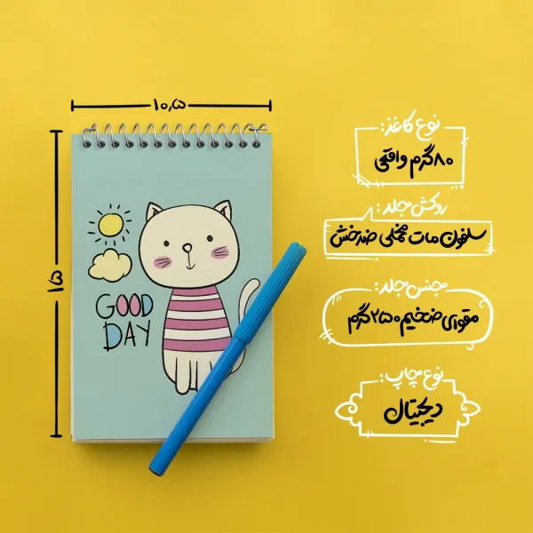 برند خندالو در زمینه تولید انواع دفاتر فانتزی و تحصیلی فعالیت میکند که به دلیل جذابیت ظاهری و طرح های متنوع طرفداران زیادی دارد. دفتر یادداشت خندالو طرح گربه بانمک محصولی مناسب برای همه عاشقان لوازم التحریر است و همچنین همه کسانی که بنا به موقعیت تحصیل یا شغلشان با دفتر و نوشت افزار زیاد سر و کار دارند. در تولید دفتر یادداشت خندالو طرح گربه بانمک از نوع صحافی فنر مارپیچ استفاده شده که در این نوع صحافی برگهها به راحتی چرخیده و یا بیرون آورده می شوند. دفتر های خندالو دارای جلد انعطاف پذیر از جنس مقوای گلاسه 250 گرم با روکش سلفون مات مخملی است که به شما امکان میدهد از دفتر خود بدون اینکه نگرانی از شکستن یا خراب شدن جلد را داشته باشید استفاده کنید و همچنین در این دفاتر از کاغذ 80 گرم با کیفیت استفاده شده که باعث میشود هنگام نوشتن به خوبی جوهر قلم بر روی صفحه نشسته و از خط خوردگیها جلوگیری کند. دفتر یادداشت خندالو با جنس و دوام مناسب، برگه های کاملاً سفید و خطوط طوسی دقیق را داراست که انسان را به نوشتن منظم و زیبا ترغیب میکند. طراحی کاملاً مناسب این دفاتر، به همراه کیفیت بالا، از آن یک محصول مورد علاقه و قابل اعتماد برای همه مقاطع تحصیلی میسازد. دفتر یادداشت خندالو طرح گربه بانمک انتخابی هوشمندانه و مناسب برای افرادی است که به دنبال دفتری با کیفیت و کاربرد عالی هستند. این دفتر، همراه خوبی برای شما در تمام مراحل تحصیل و کار خواهد بود و تجربهای لذتبخش از نوشتن و آموختن را به شما هدیه میدهد.