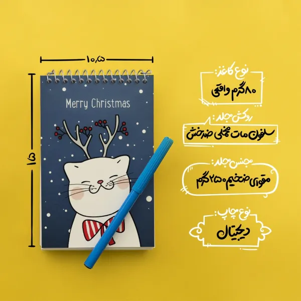 برند خندالو در زمینه تولید انواع دفاتر فانتزی و تحصیلی فعالیت میکند که به دلیل جذابیت ظاهری و طرح های متنوع طرفداران زیادی دارد. دفتر یادداشت خندالو طرح گربه و کریسمس محصولی مناسب برای همه عاشقان لوازم التحریر است و همچنین همه کسانی که بنا به موقعیت تحصیل یا شغلشان با دفتر و نوشت افزار زیاد سر و کار دارند. در تولید دفتر یادداشت خندالو طرح گربه و کریسمس از نوع صحافی فنر مارپیچ استفاده شده که در این نوع صحافی برگهها به راحتی چرخیده و یا بیرون آورده می شوند. دفتر های خندالو دارای جلد انعطاف پذیر از جنس مقوای گلاسه 250 گرم با روکش سلفون مات مخملی است که به شما امکان میدهد از دفتر خود بدون اینکه نگرانی از شکستن یا خراب شدن جلد را داشته باشید استفاده کنید و همچنین در این دفاتر از کاغذ 80 گرم با کیفیت استفاده شده که باعث میشود هنگام نوشتن به خوبی جوهر قلم بر روی صفحه نشسته و از خط خوردگیها جلوگیری کند. دفتر یادداشت خندالو با جنس و دوام مناسب، برگه های کاملاً سفید و خطوط طوسی دقیق را داراست که انسان را به نوشتن منظم و زیبا ترغیب میکند. طراحی کاملاً مناسب این دفاتر، به همراه کیفیت بالا، از آن یک محصول مورد علاقه و قابل اعتماد برای همه مقاطع تحصیلی میسازد. دفتر یادداشت خندالو طرح گربه و کریسمس انتخابی هوشمندانه و مناسب برای افرادی است که به دنبال دفتری با کیفیت و کاربرد عالی هستند. این دفتر، همراه خوبی برای شما در تمام مراحل تحصیل و کار خواهد بود و تجربهای لذتبخش از نوشتن و آموختن را به شما هدیه میدهد.