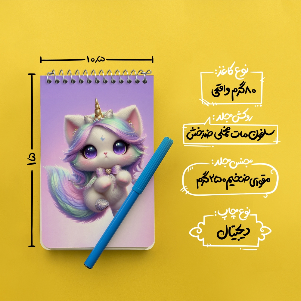 برند خندالو در زمینه تولید انواع دفاتر فانتزی و تحصیلی فعالیت میکند که به دلیل جذابیت ظاهری و طرح های متنوع طرفداران زیادی دارد. دفتر یادداشت خندالو طرح گربه کیوت محصولی مناسب برای همه عاشقان لوازم التحریر است و همچنین همه کسانی که بنا به موقعیت تحصیل یا شغلشان با دفتر و نوشت افزار زیاد سر و کار دارند. در تولید دفتر یادداشت خندالو طرح گربه کیوت از نوع صحافی فنر مارپیچ استفاده شده که در این نوع صحافی برگهها به راحتی چرخیده و یا بیرون آورده می شوند. دفتر های خندالو دارای جلد انعطاف پذیر از جنس مقوای گلاسه 250 گرم با روکش سلفون مات مخملی است که به شما امکان میدهد از دفتر خود بدون اینکه نگرانی از شکستن یا خراب شدن جلد را داشته باشید استفاده کنید و همچنین در این دفاتر از کاغذ 80 گرم با کیفیت استفاده شده که باعث میشود هنگام نوشتن به خوبی جوهر قلم بر روی صفحه نشسته و از خط خوردگیها جلوگیری کند. دفتر یادداشت خندالو با جنس و دوام مناسب، برگه های کاملاً سفید و خطوط طوسی دقیق را داراست که انسان را به نوشتن منظم و زیبا ترغیب میکند. طراحی کاملاً مناسب این دفاتر، به همراه کیفیت بالا، از آن یک محصول مورد علاقه و قابل اعتماد برای همه مقاطع تحصیلی میسازد. دفتر یادداشت خندالو طرح گربه کیوت انتخابی هوشمندانه و مناسب برای افرادی است که به دنبال دفتری با کیفیت و کاربرد عالی هستند. این دفتر، همراه خوبی برای شما در تمام مراحل تحصیل و کار خواهد بود و تجربهای لذتبخش از نوشتن و آموختن را به شما هدیه میدهد.