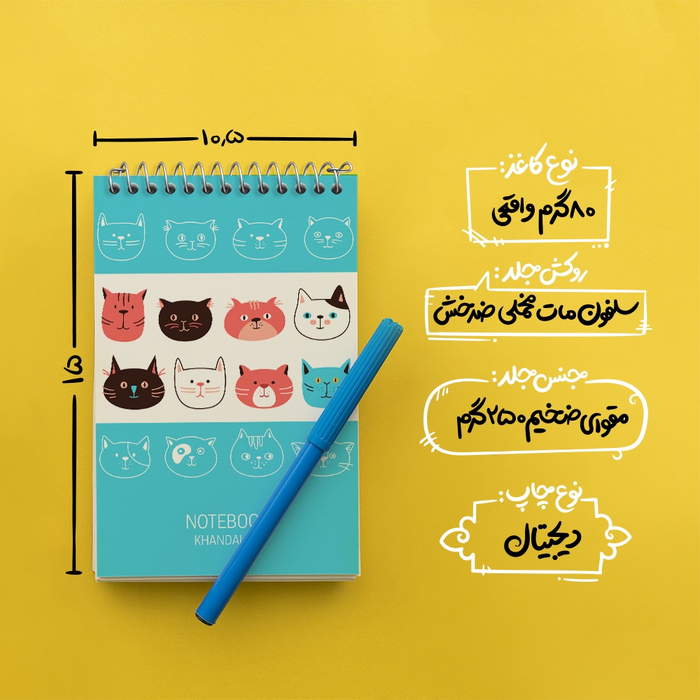 برند خندالو در زمینه تولید انواع دفاتر فانتزی و تحصیلی فعالیت میکند که به دلیل جذابیت ظاهری و طرح های متنوع طرفداران زیادی دارد. دفتر یادداشت خندالو طرح گربه (Cat) محصولی مناسب برای همه عاشقان لوازم التحریر است و همچنین همه کسانی که بنا به موقعیت تحصیل یا شغلشان با دفتر و نوشت افزار زیاد سر و کار دارند. در تولید دفتر یادداشت خندالو طرح گربه (Cat) از نوع صحافی فنر مارپیچ استفاده شده که در این نوع صحافی برگهها به راحتی چرخیده و یا بیرون آورده می شوند. دفتر های خندالو دارای جلد انعطاف پذیر از جنس مقوای گلاسه 250 گرم با روکش سلفون مات مخملی است که به شما امکان میدهد از دفتر خود بدون اینکه نگرانی از شکستن یا خراب شدن جلد را داشته باشید استفاده کنید و همچنین در این دفاتر از کاغذ 80 گرم با کیفیت استفاده شده که باعث میشود هنگام نوشتن به خوبی جوهر قلم بر روی صفحه نشسته و از خط خوردگیها جلوگیری کند. دفتر یادداشت خندالو با جنس و دوام مناسب، برگه های کاملاً سفید و خطوط طوسی دقیق را داراست که انسان را به نوشتن منظم و زیبا ترغیب میکند. طراحی کاملاً مناسب این دفاتر، به همراه کیفیت بالا، از آن یک محصول مورد علاقه و قابل اعتماد برای همه مقاطع تحصیلی میسازد. دفتر یادداشت خندالو طرح گربه (Cat) انتخابی هوشمندانه و مناسب برای افرادی است که به دنبال دفتری با کیفیت و کاربرد عالی هستند. این دفتر، همراه خوبی برای شما در تمام مراحل تحصیل و کار خواهد بود و تجربهای لذتبخش از نوشتن و آموختن را به شما هدیه میدهد.