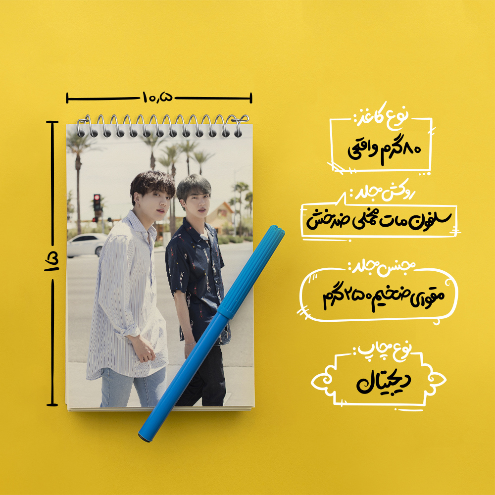 برند خندالو در زمینه تولید انواع دفاتر فانتزی و تحصیلی فعالیت میکند که به دلیل جذابیت ظاهری و طرح های متنوع طرفداران زیادی دارد. دفتر یادداشت خندالو طرح گروه بی تی اس BTS محصولی مناسب برای همه عاشقان لوازم التحریر است و همچنین همه کسانی که بنا به موقعیت تحصیل یا شغلشان با دفتر و نوشت افزار زیاد سر و کار دارند. در تولید دفتر یادداشت خندالو طرح گروه بی تی اس BTS از نوع صحافی فنر مارپیچ استفاده شده که در این نوع صحافی برگه‌ها به راحتی چرخیده و یا بیرون آورده می شوند.