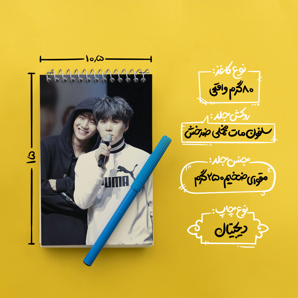 برند خندالو در زمینه تولید انواع دفاتر فانتزی و تحصیلی فعالیت میکند که به دلیل جذابیت ظاهری و طرح های متنوع طرفداران زیادی دارد. دفتر یادداشت خندالو طرح گروه بی تی اس BTS محصولی مناسب برای همه عاشقان لوازم التحریر است و همچنین همه کسانی که بنا به موقعیت تحصیل یا شغلشان با دفتر و نوشت افزار زیاد سر و کار دارند. در تولید دفتر یادداشت خندالو طرح گروه بی تی اس BTS از نوع صحافی فنر مارپیچ استفاده شده که در این نوع صحافی برگه‌ها به راحتی چرخیده و یا بیرون آورده می شوند.