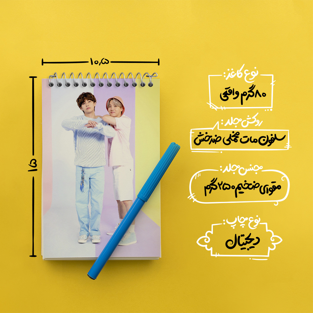 برند خندالو در زمینه تولید انواع دفاتر فانتزی و تحصیلی فعالیت میکند که به دلیل جذابیت ظاهری و طرح های متنوع طرفداران زیادی دارد. دفتر یادداشت خندالو طرح گروه بی تی اس BTS محصولی مناسب برای همه عاشقان لوازم التحریر است و همچنین همه کسانی که بنا به موقعیت تحصیل یا شغلشان با دفتر و نوشت افزار زیاد سر و کار دارند. در تولید دفتر یادداشت خندالو طرح گروه بی تی اس BTS از نوع صحافی فنر مارپیچ استفاده شده که در این نوع صحافی برگه‌ها به راحتی چرخیده و یا بیرون آورده می شوند.