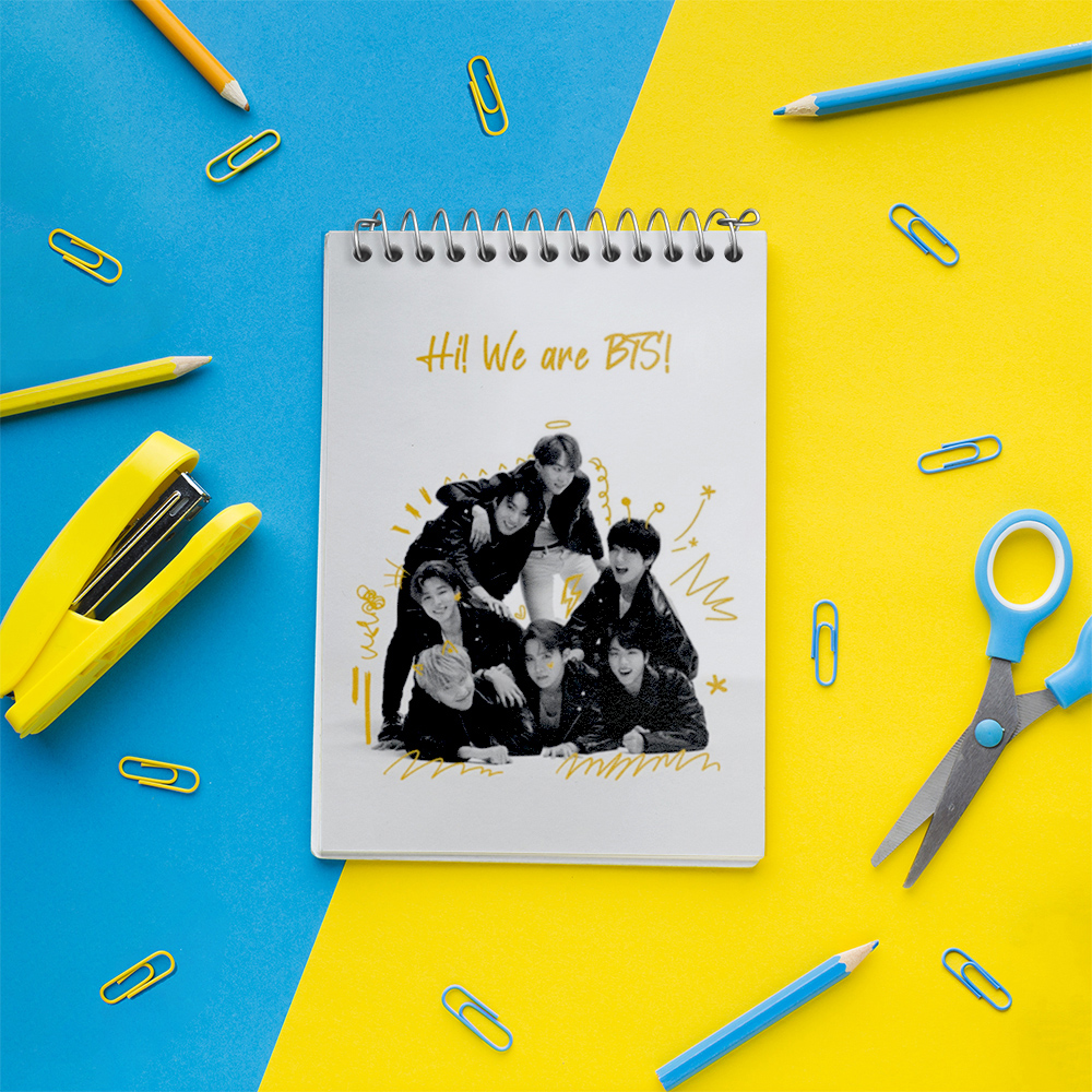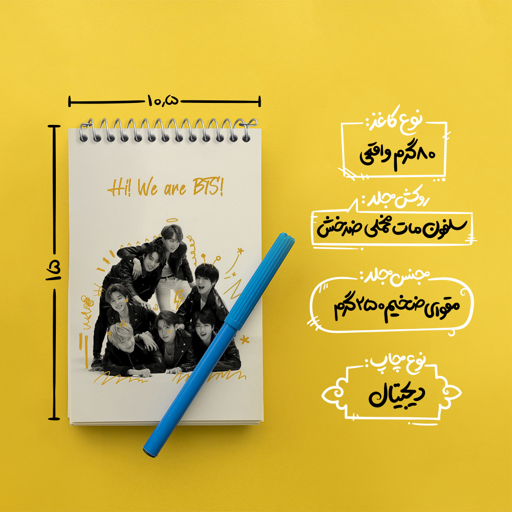 برند خندالو در زمینه تولید انواع دفاتر فانتزی و تحصیلی فعالیت میکند که به دلیل جذابیت ظاهری و طرح های متنوع طرفداران زیادی دارد. دفتر یادداشت خندالو طرح گروه بی تی اس BTS محصولی مناسب برای همه عاشقان لوازم التحریر است و همچنین همه کسانی که بنا به موقعیت تحصیل یا شغلشان با دفتر و نوشت افزار زیاد سر و کار دارند. در تولید دفتر یادداشت خندالو طرح گروه بی تی اس BTS از نوع صحافی فنر مارپیچ استفاده شده که در این نوع صحافی برگه‌ها به راحتی چرخیده و یا بیرون آورده می شوند.