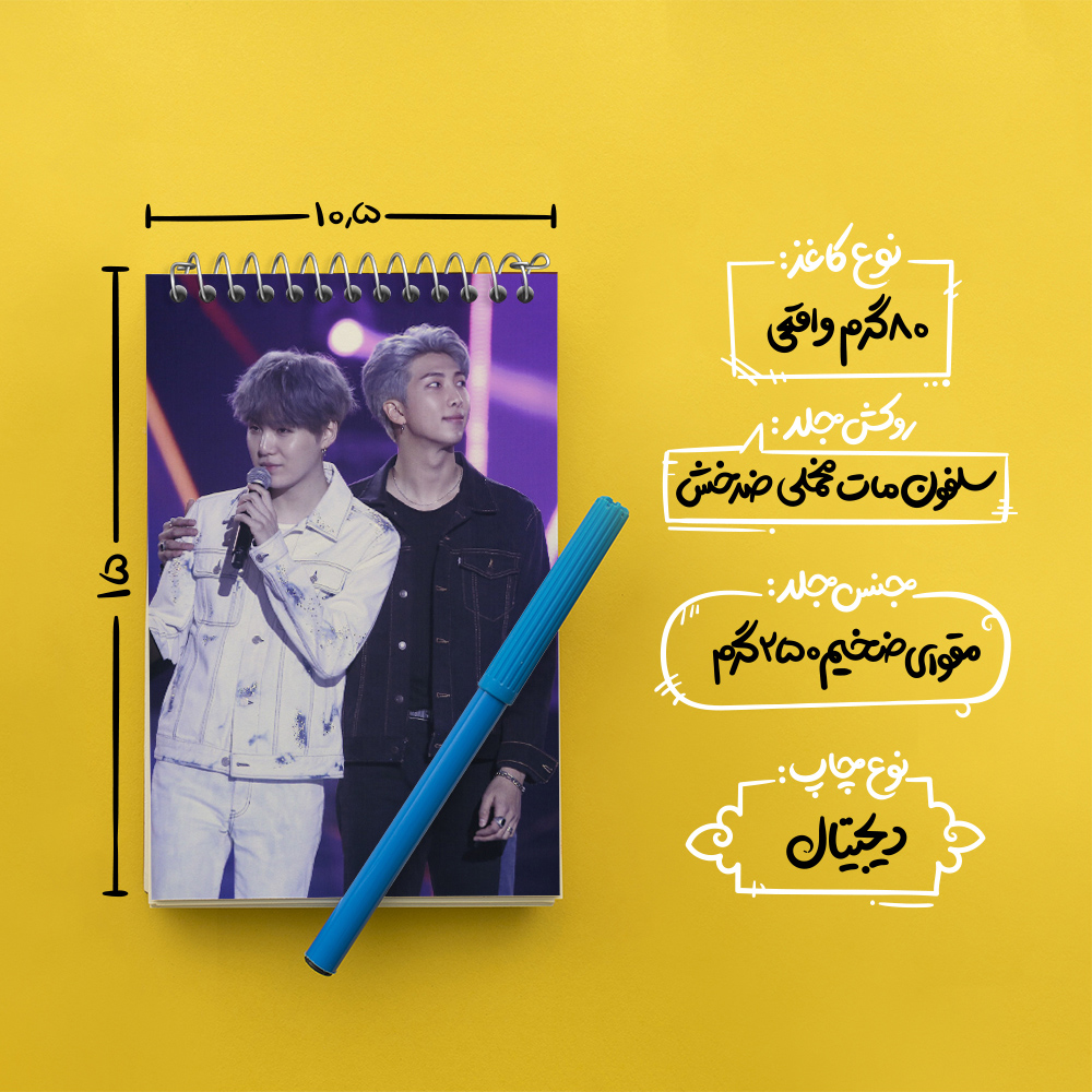 برند خندالو در زمینه تولید انواع دفاتر فانتزی و تحصیلی فعالیت میکند که به دلیل جذابیت ظاهری و طرح های متنوع طرفداران زیادی دارد. دفتر یادداشت خندالو طرح گروه بی تی اس BTS محصولی مناسب برای همه عاشقان لوازم التحریر است و همچنین همه کسانی که بنا به موقعیت تحصیل یا شغلشان با دفتر و نوشت افزار زیاد سر و کار دارند. در تولید دفتر یادداشت خندالو طرح گروه بی تی اس BTS از نوع صحافی فنر مارپیچ استفاده شده که در این نوع صحافی برگه‌ها به راحتی چرخیده و یا بیرون آورده می شوند.