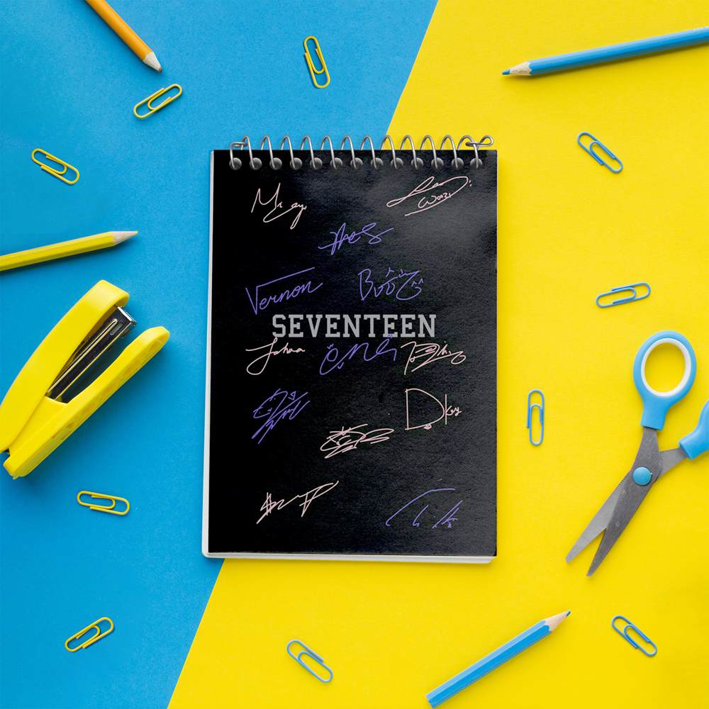 برند خندالو در زمینه تولید انواع دفاتر فانتزی و تحصیلی فعالیت میکند که به دلیل جذابیت ظاهری و طرح های متنوع طرفداران زیادی دارد. دفتر یادداشت خندالو طرح گروه سونتین Seventeen محصولی مناسب برای همه عاشقان لوازم التحریر است و همچنین همه کسانی که بنا به موقعیت تحصیل یا شغلشان با دفتر و نوشت افزار زیاد سر و کار دارند. در تولید دفتر یادداشت خندالو طرح گروه سونتین Seventeen از نوع صحافی فنر مارپیچ استفاده شده که در این نوع صحافی برگه‌ها به راحتی چرخیده و یا بیرون آورده می شوند.